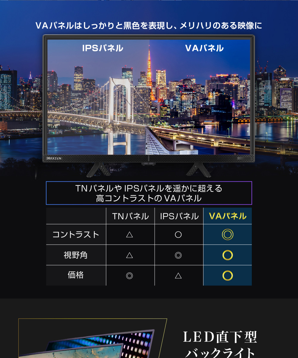 ★ VAパネルはしっかりと黒色を表現し、メリハリのある映像に