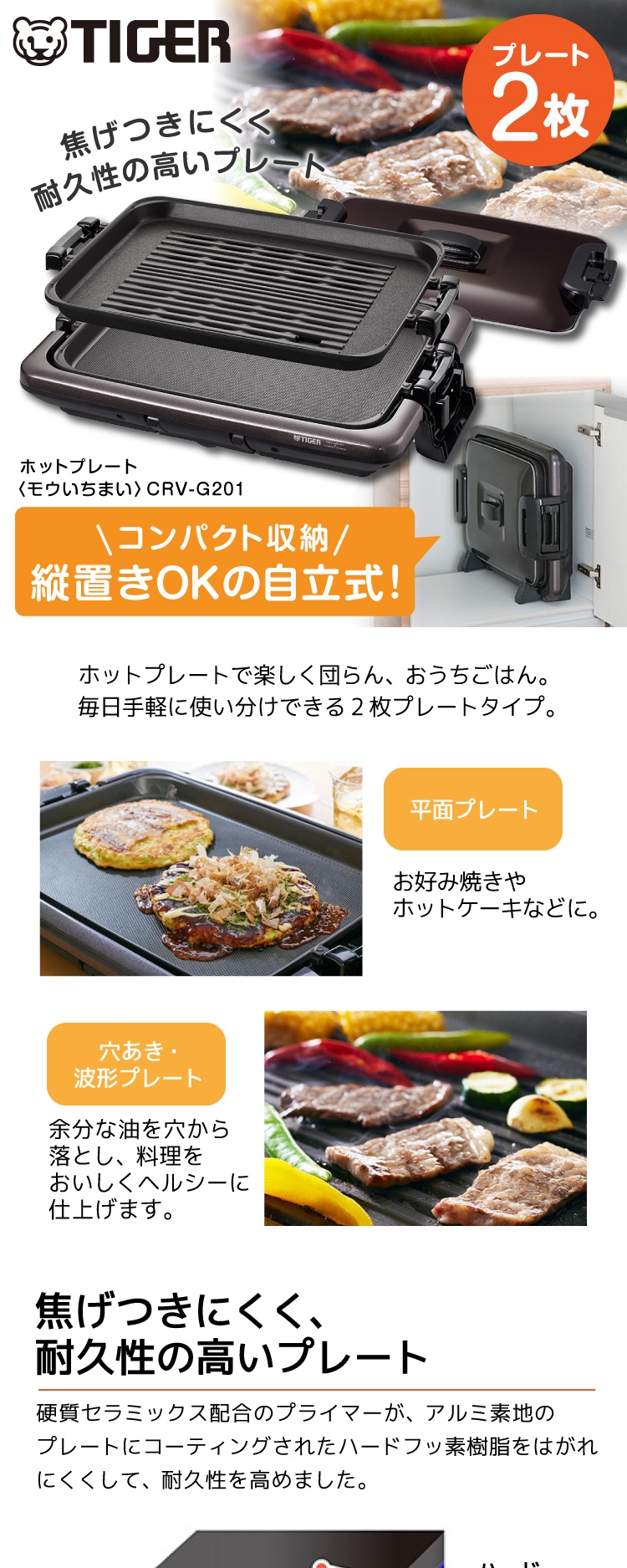 TIGER CRV-G201T ブラウン モウいちまい [ホットプレート]