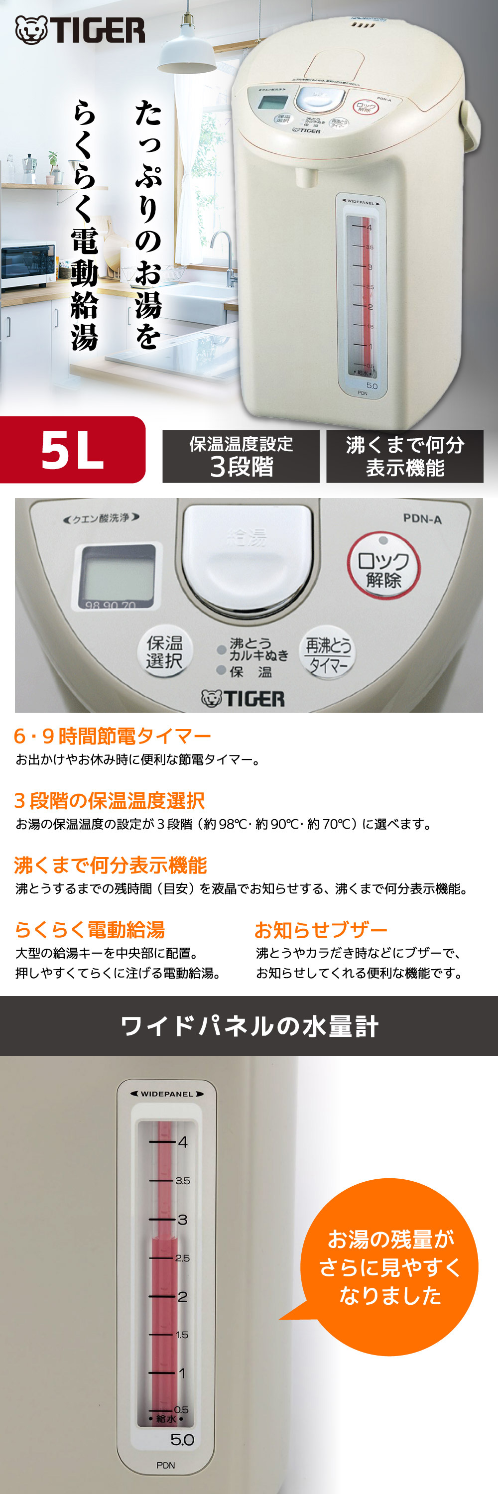 お湯の残量がさらに見やすくなりました。