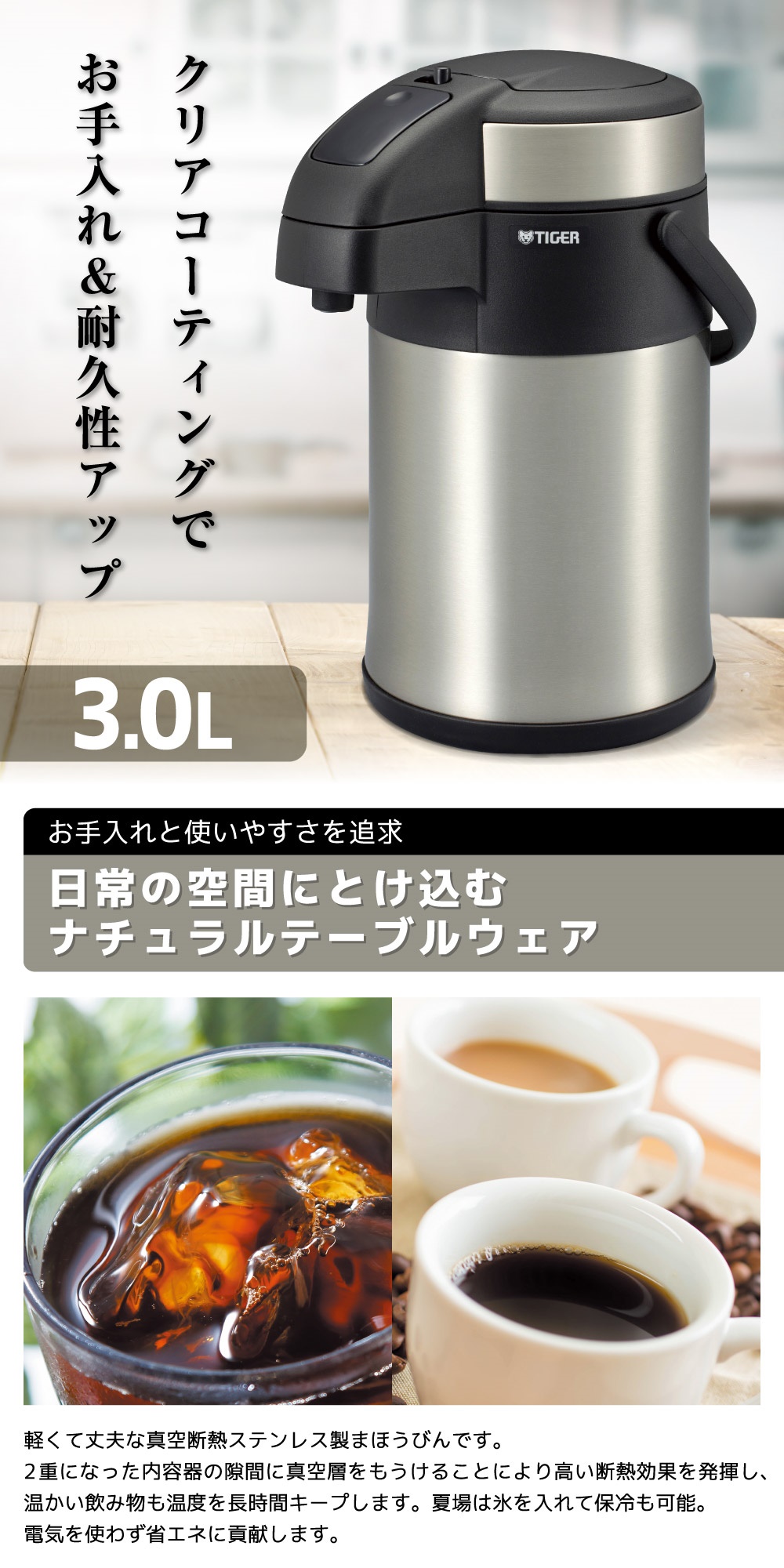 TIGER MAA-C301XC クリアーステンレス とら~ず [真空断熱ステンレスエアーポット (3.0L)]