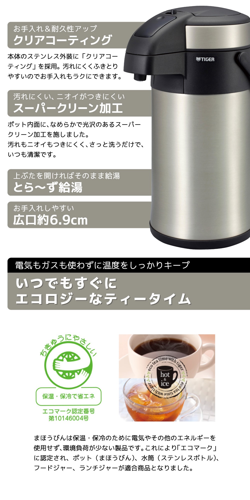 お手入れしやすさアップたっぷり使える省エネまほうびん