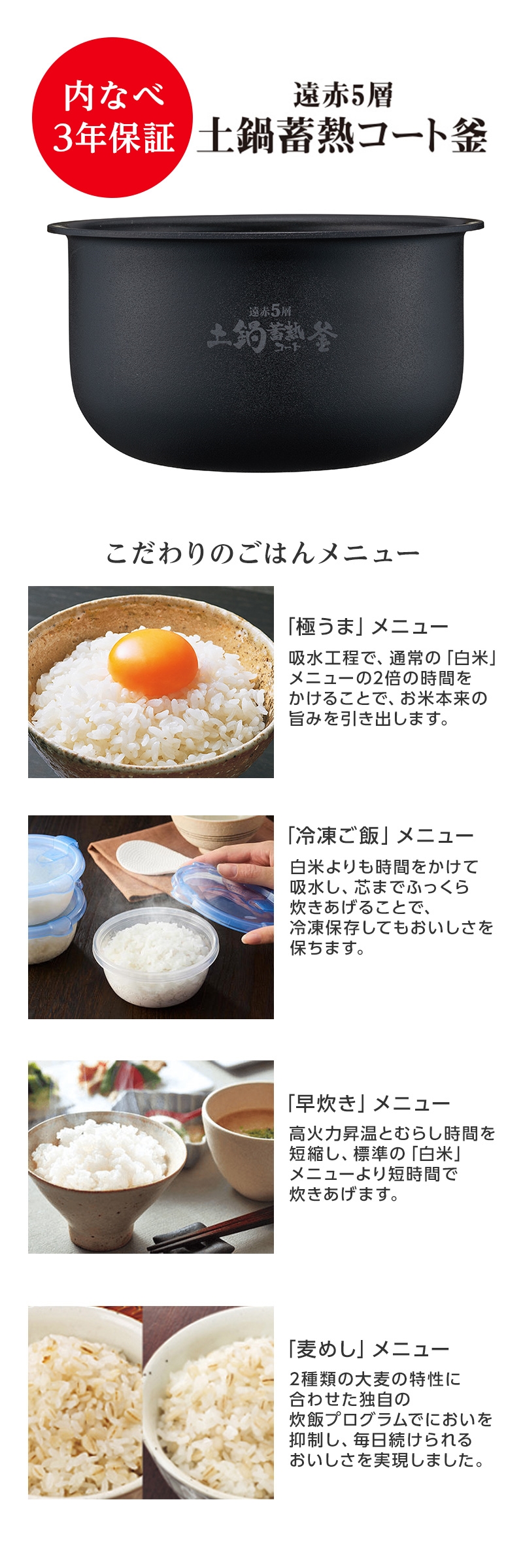 | 内釜 | 遠赤5層土鍋蓄熱コート釜 3年保証 |