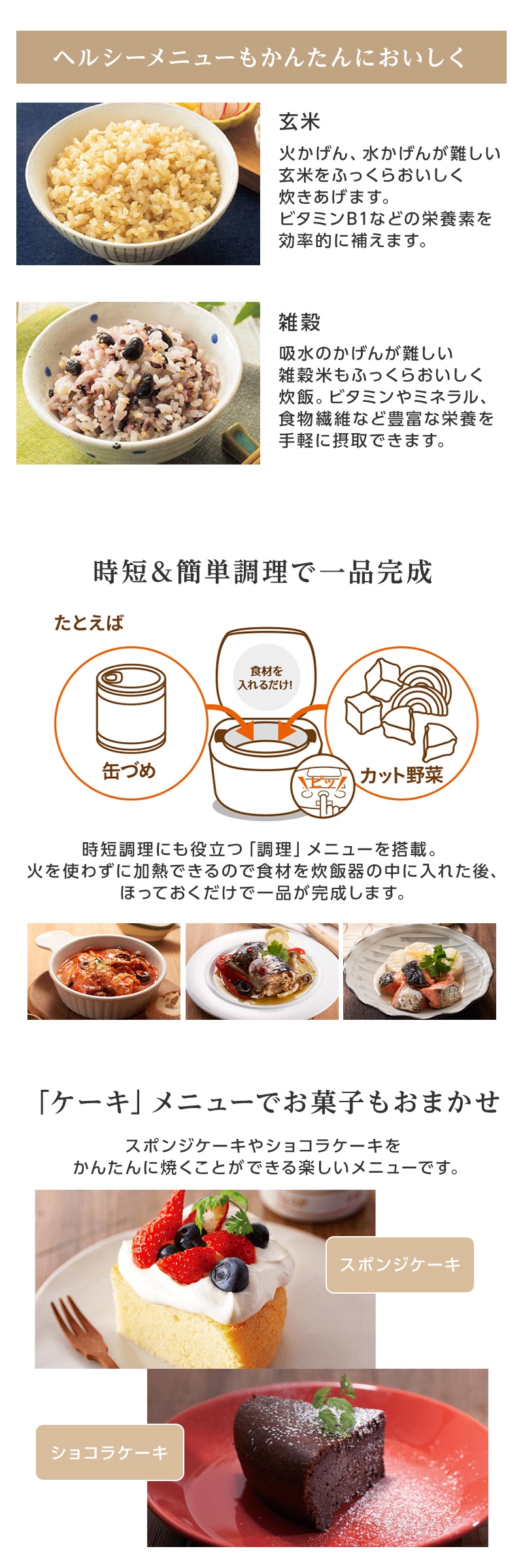 小容量ですっきりコンパクト!ごはんのおいしさと、豊富な時短調理メニューを両立