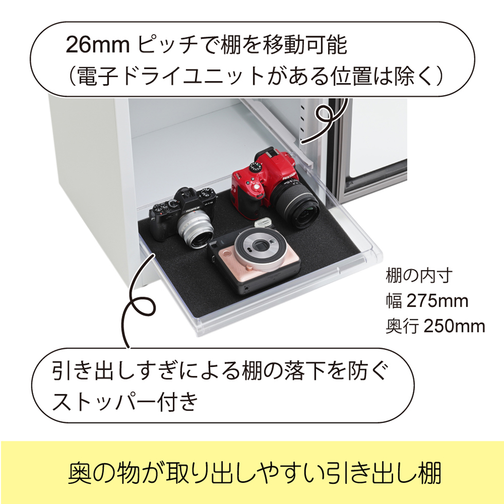 ★ 庫内湿度を30%~50%を任意に設定可能でき、レンズのカビと電子部品の劣化防止にメンテナンスフリーで安定した除湿性能を発揮する全自動全自動防湿庫。