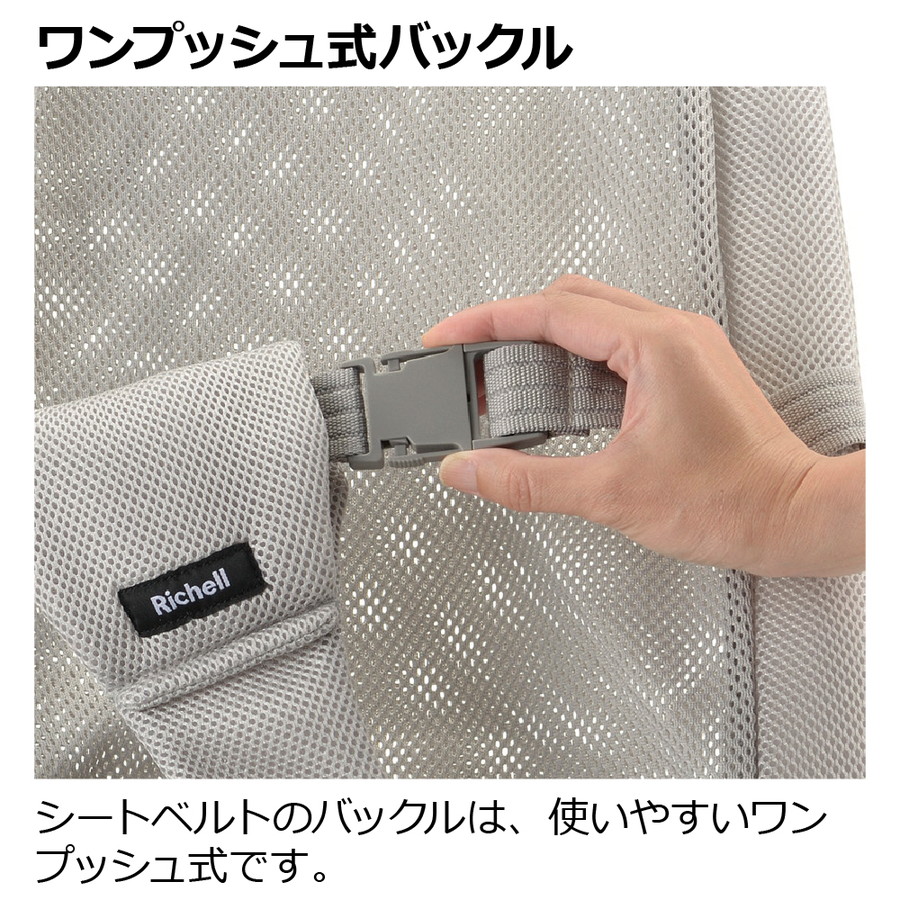 ★ シートベルトのバックルは、使いやすいワンプッシュ式です。