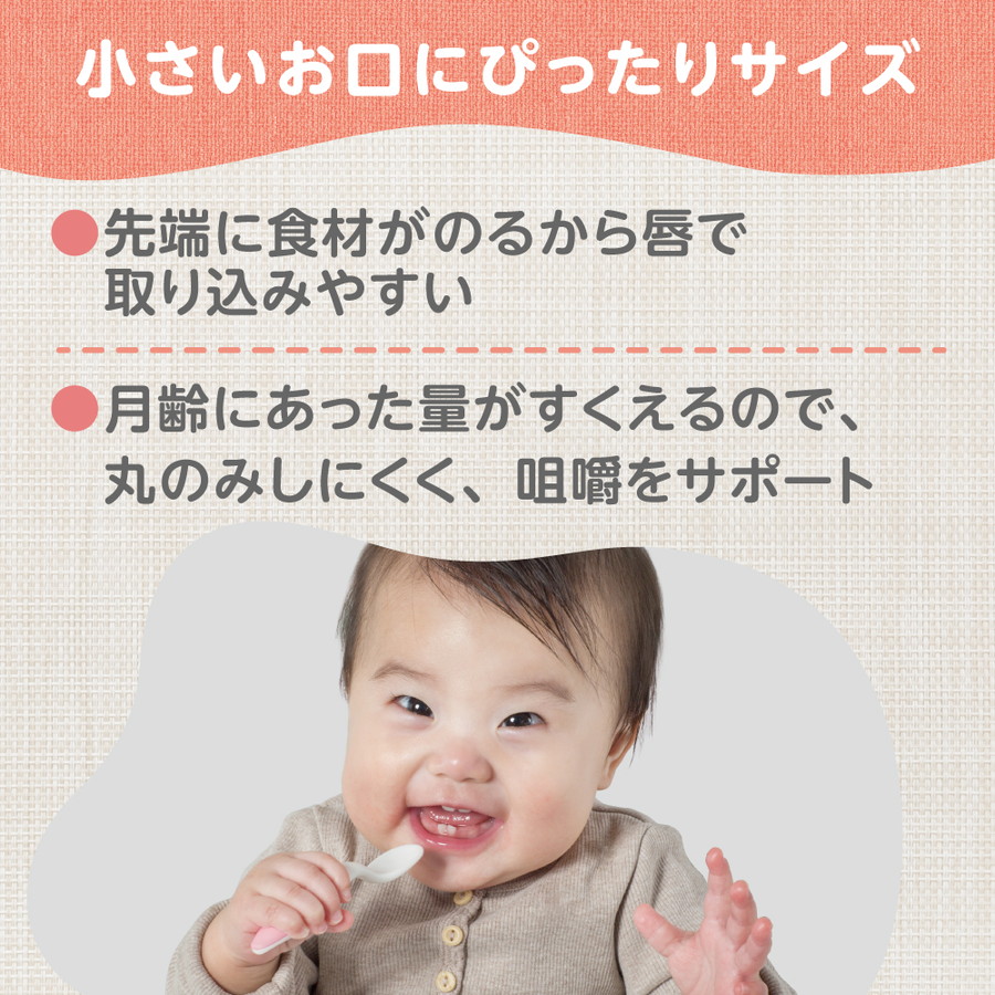 月齢にあった量がすくえるので、丸のみしにくく、咀嚼を促します。