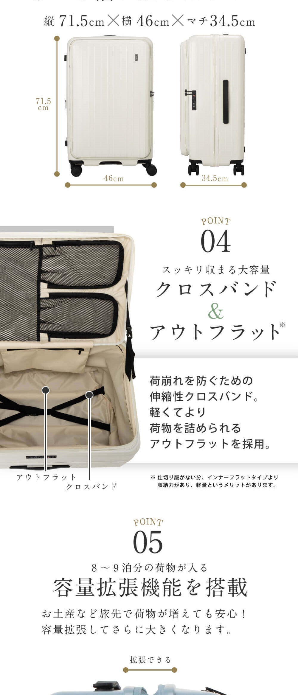 ★Lサイズは8~9泊分の荷物がたっぷり収納できます!