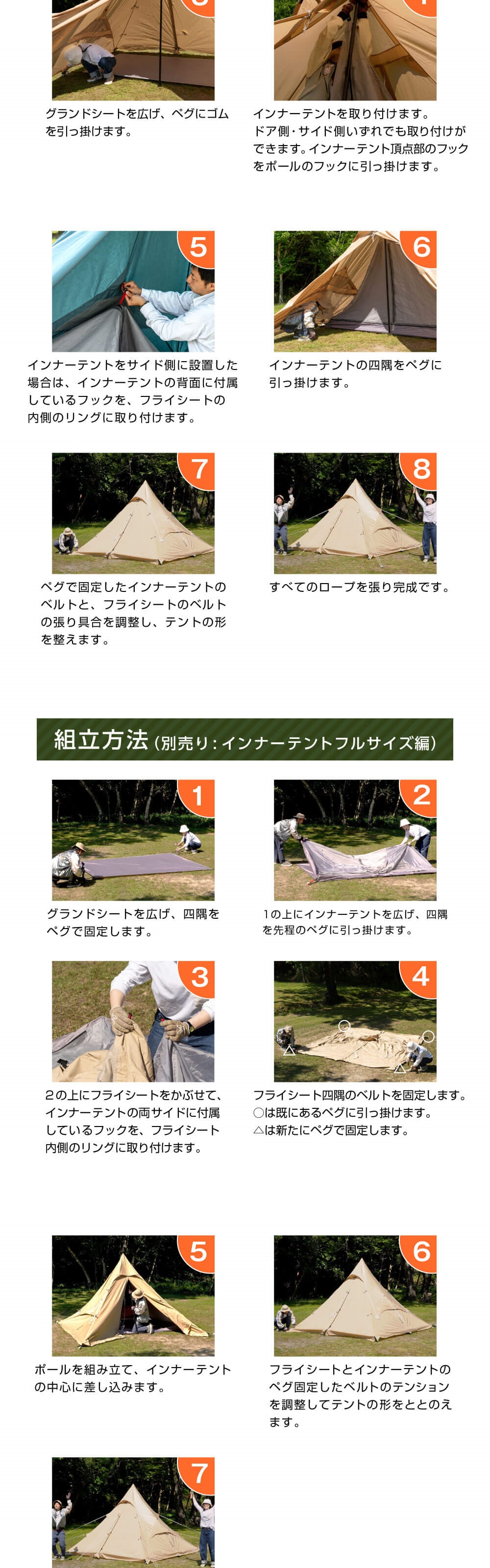 左右対称型で建てやすいピラミッド型ワンポールテント。初心者の方でもわかりやすいシンプルな構造です。