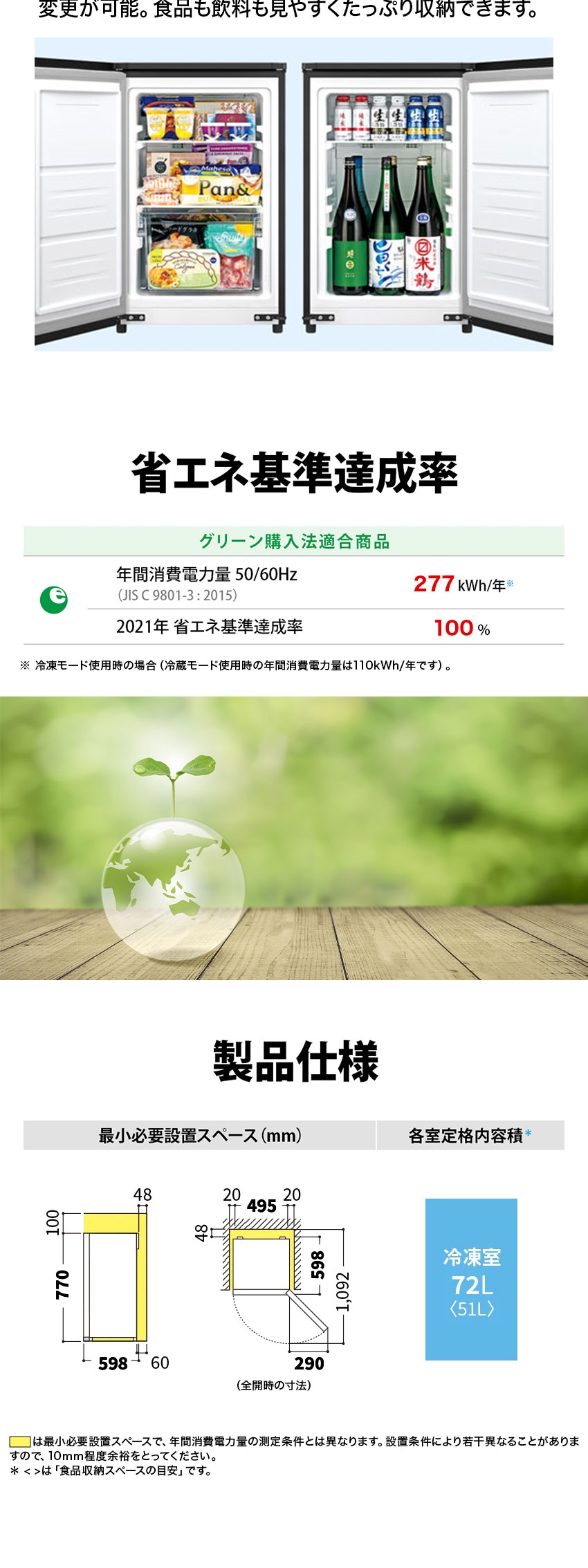 | ドアの開き方 | 右開き/左開き(付け替え) |