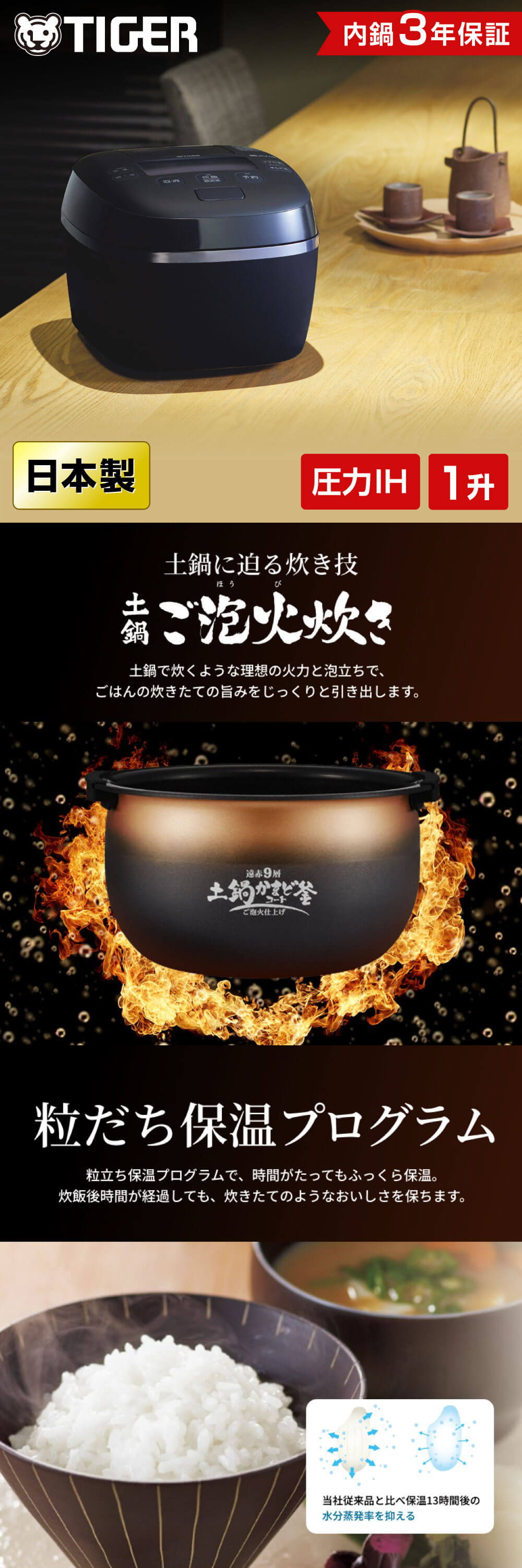 TIGER JPI-X180-KX フォグブラック ご泡火炊き [圧力IHジャー炊飯器 (1升炊き)]