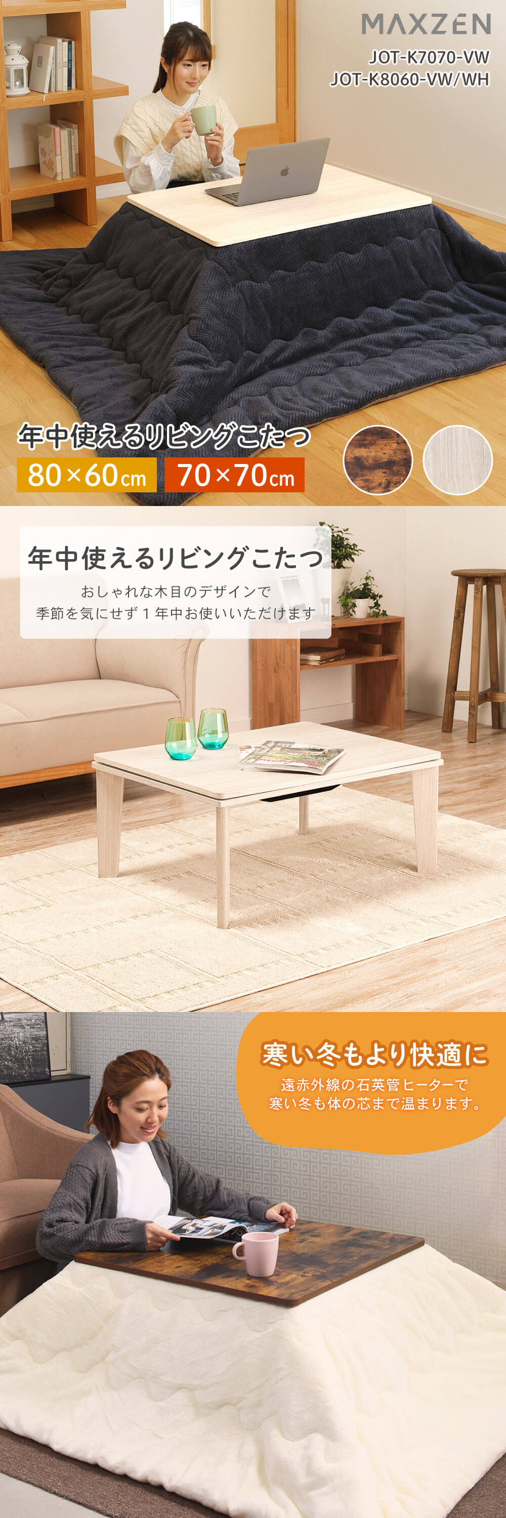 【アウトレット】 MAXZEN JOT-K8060-VW ヴィンテージウッド [リビングこたつ]