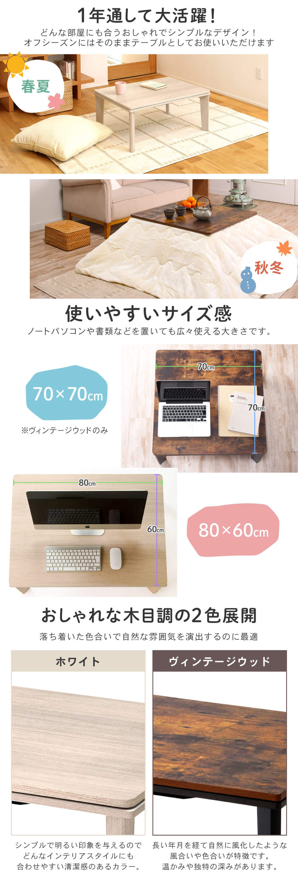 おしゃれな木目のデザインで季節を気にせず1年中お使いいただけます。