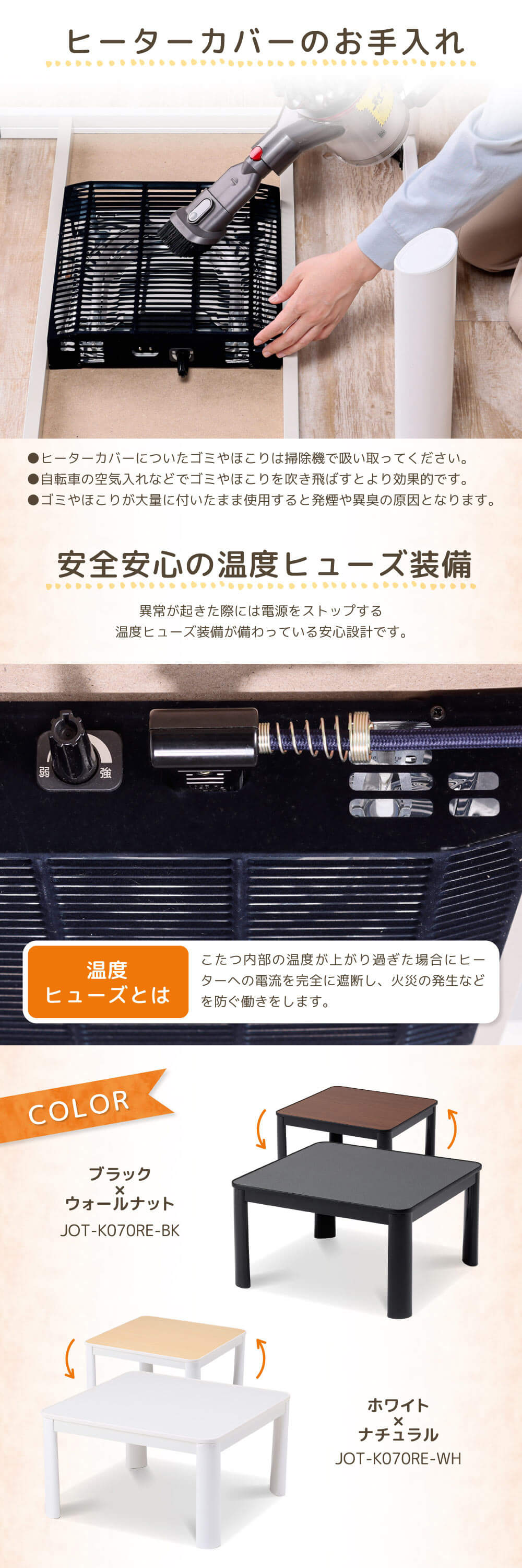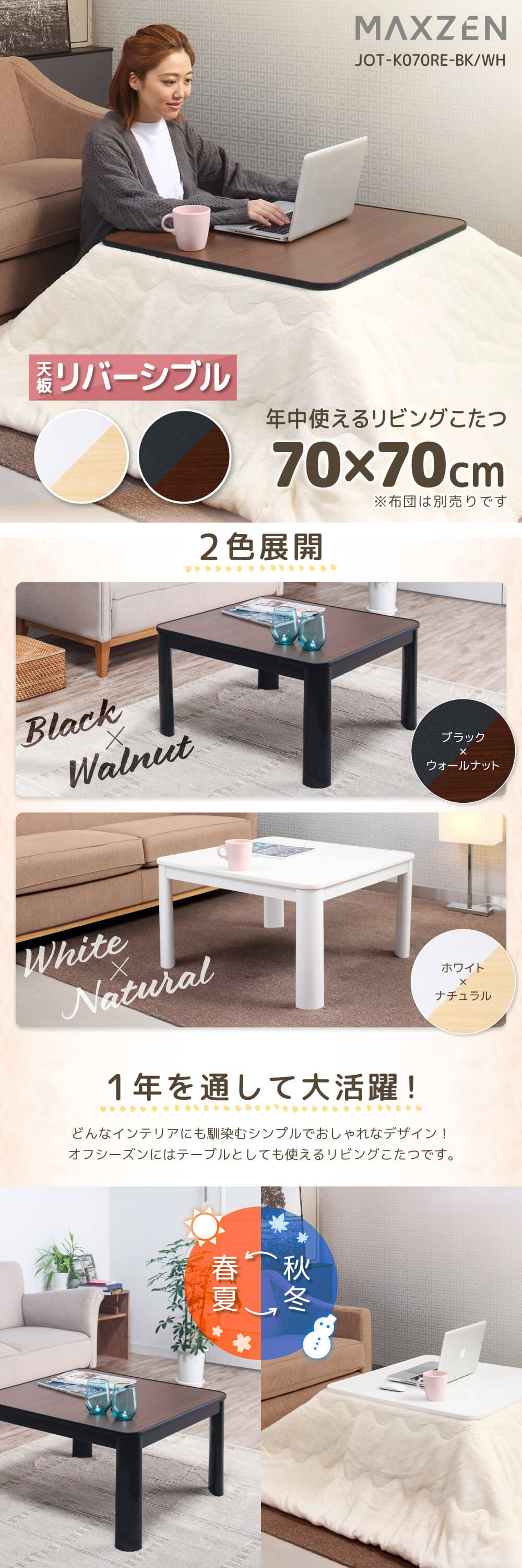 MAXZEN JOT-K070RE-WH ホワイト×ナチュラル [こたつ リバーシブル]