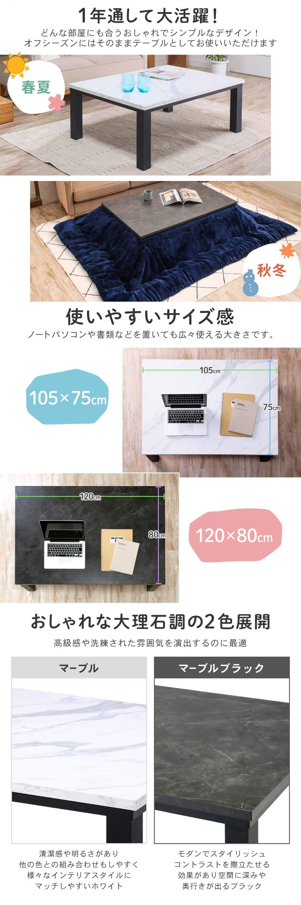 MAXZEN JOT-K12080-MA マーブル [リビングこたつ (120×80cm) ※...