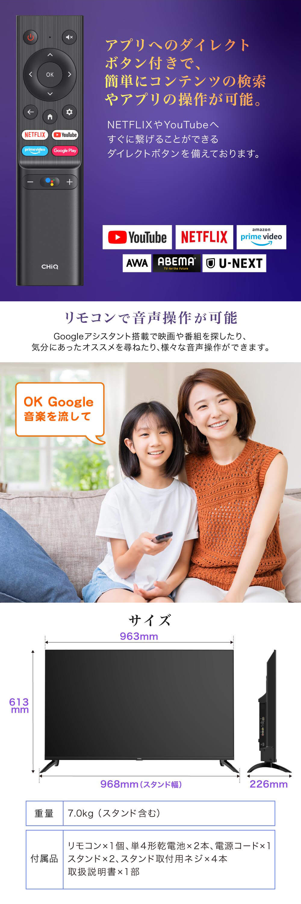 ※Google、Google Play、Android TV、Chromecast built-in、およびその他のマークはGoogle LLCの商標です。