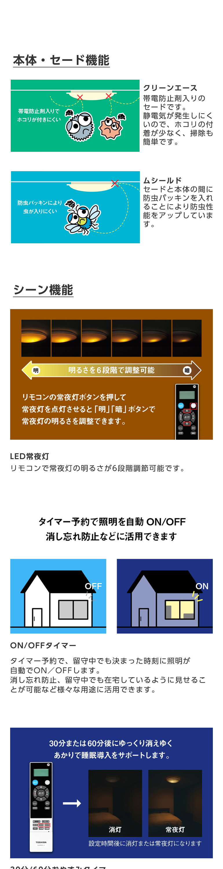 リモコンで常夜灯の明るさが6段階調節可能です。