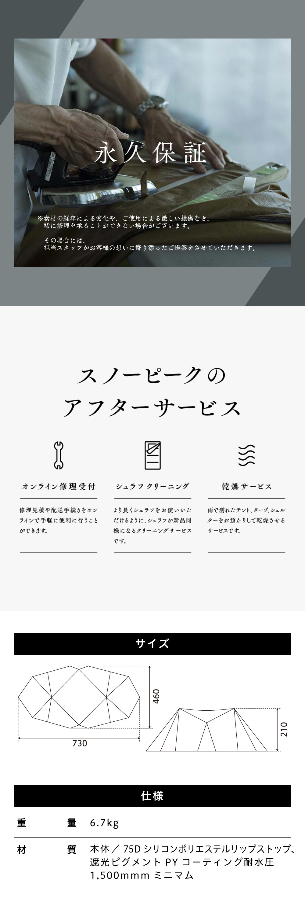 | フライ材質 | 75Dシリコンポリエステルリップストップ 遮光ピグメントPUコーティング |