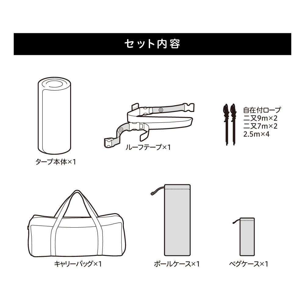 様々な設営バリエーションが楽しめるタープMサイズの軽量仕様