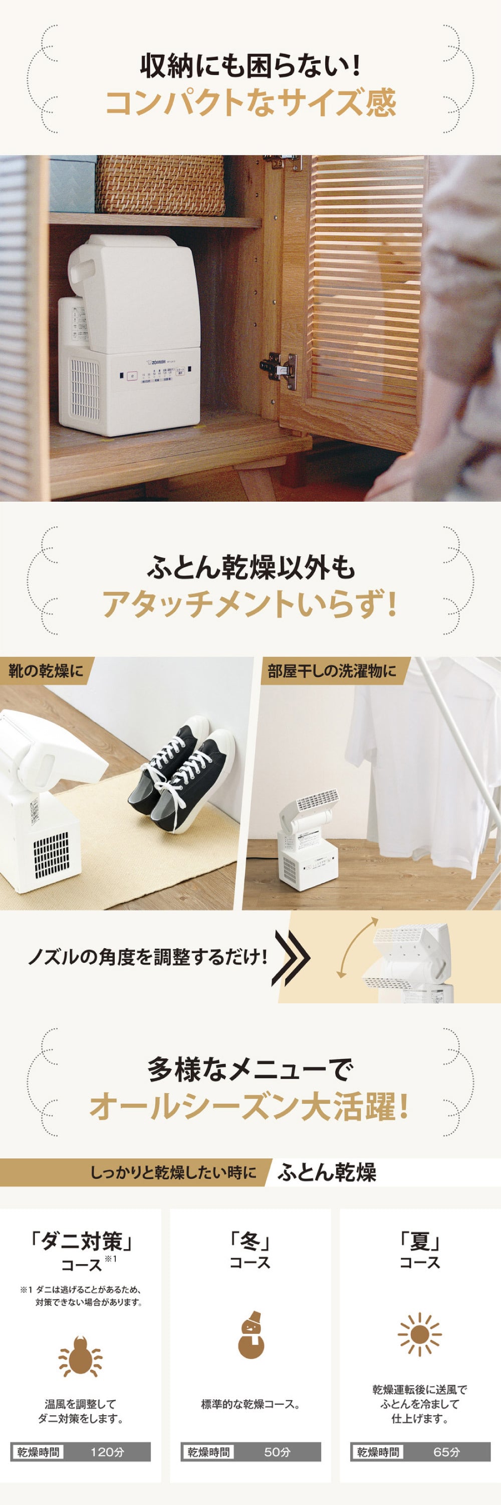 ふとんから衣類や靴の乾燥まで、これ1台でマルチに活躍します。