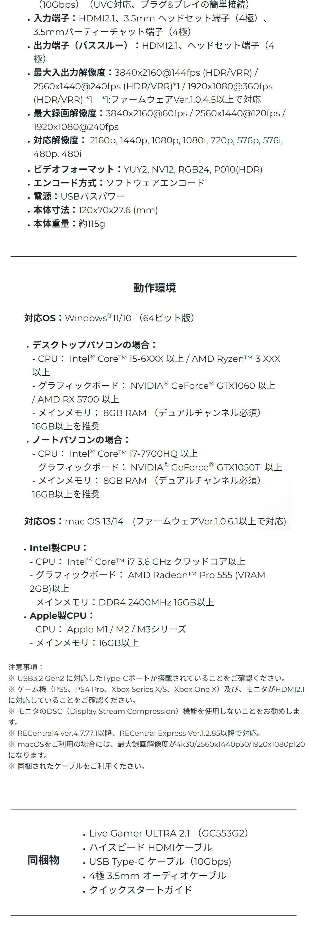 4K/144fpsおよび4K/120fpsのHDR/VRRパススルーに対応。PCゲームや最新ゲーム機の映像を高解像度、高リフレッシュレートのまま表示することができます。カクつき抑えた滑らかな映像でゲームプレイを楽しみながら、4K/60fpsの高画質な録画が可能です。