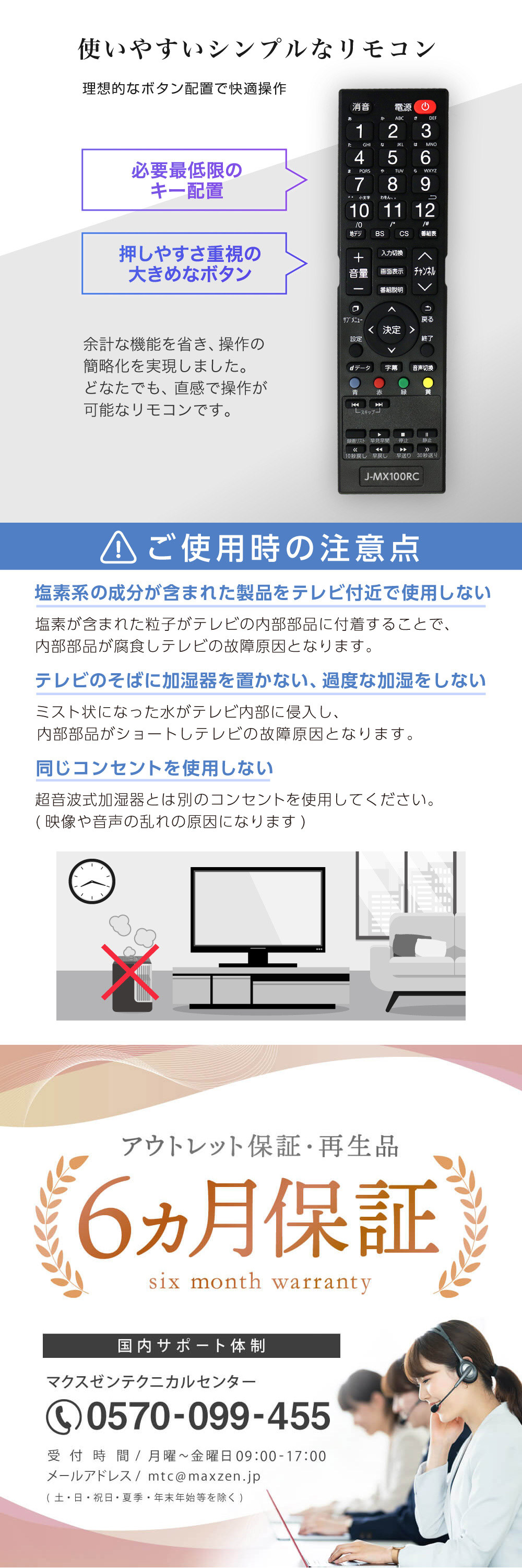 ・テレビのそばに加湿器を置かない。過度な加湿をしない