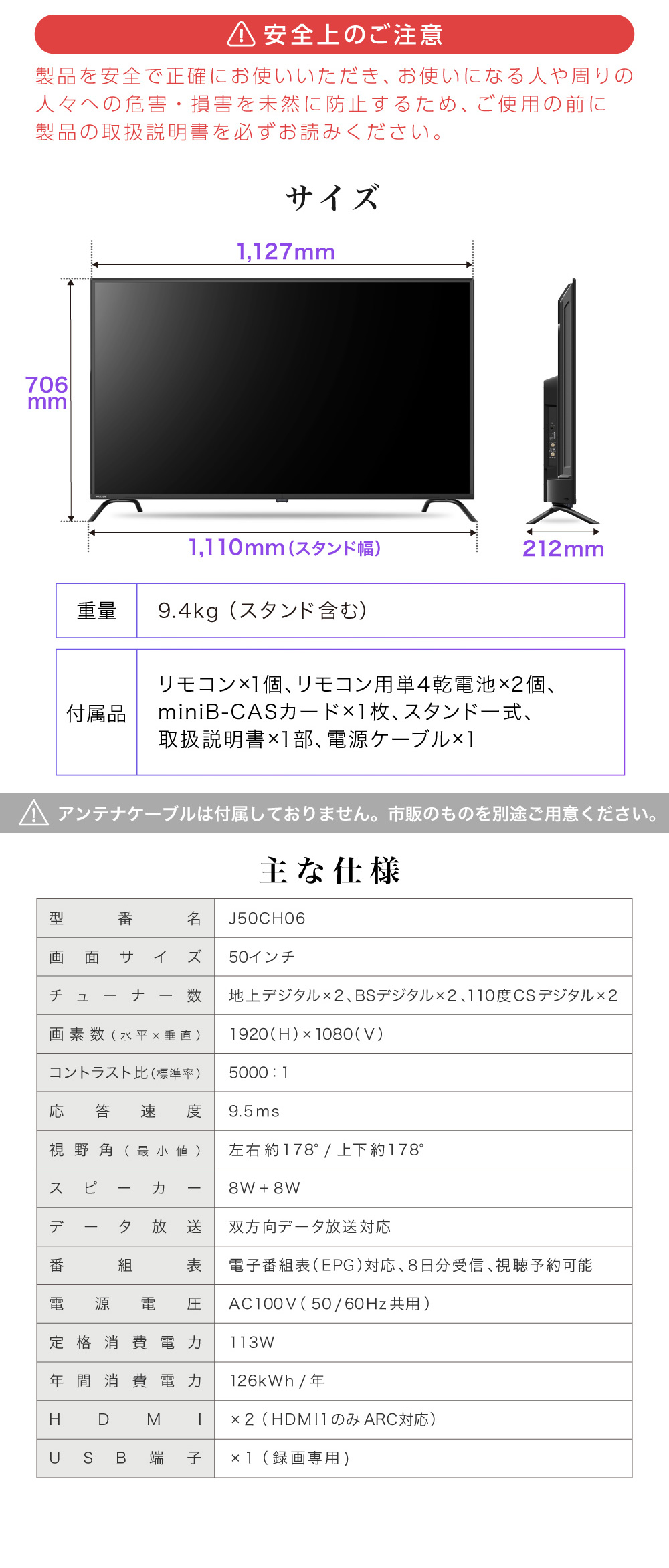 【アウトレット】 MAXZEN J50CH06 [50型 地上・BS・110度CSデジタル フルハイビジョン 液晶テレビ]
