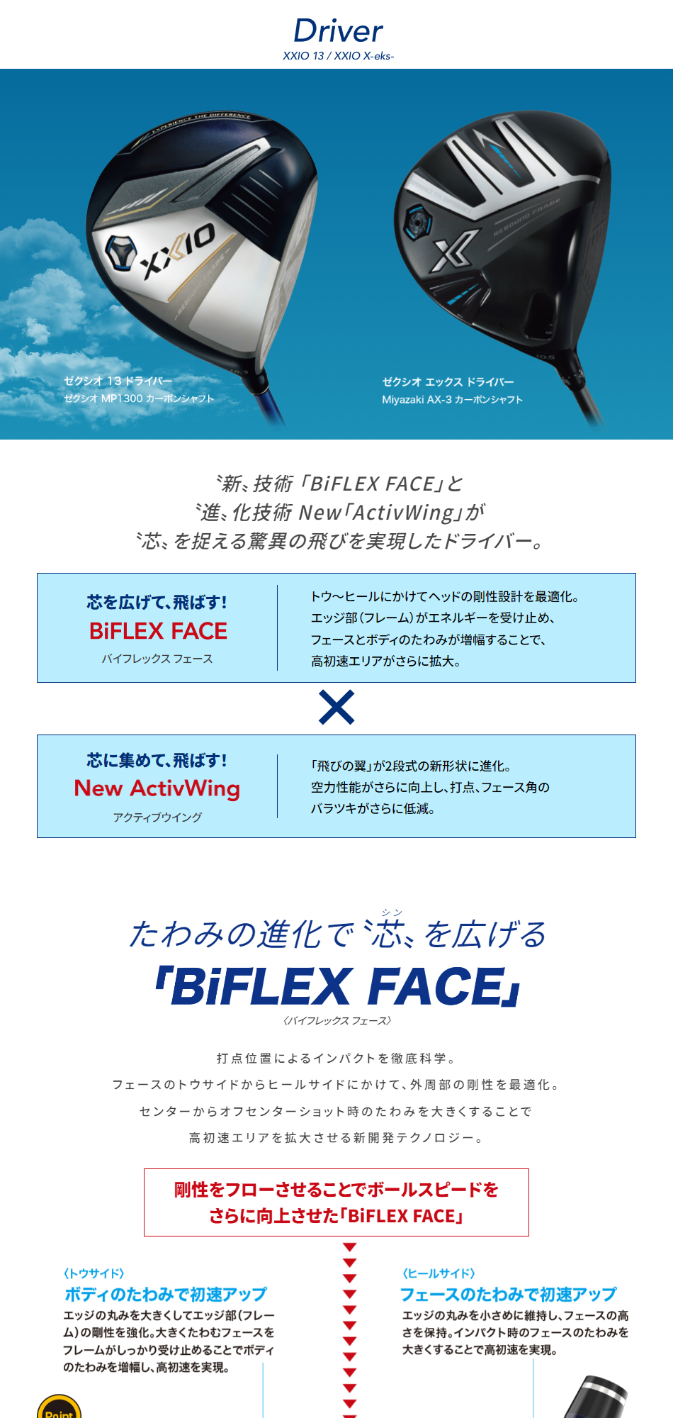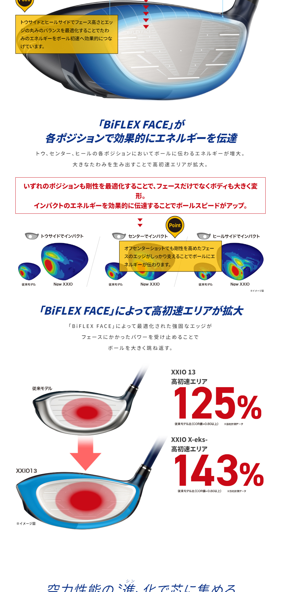 「新」技術「BiFLEX FACE」と「進」化技術 New「ActivWing」が「芯」を捉える驚異の飛びを実現したゼクシオ 13 ドライバー。