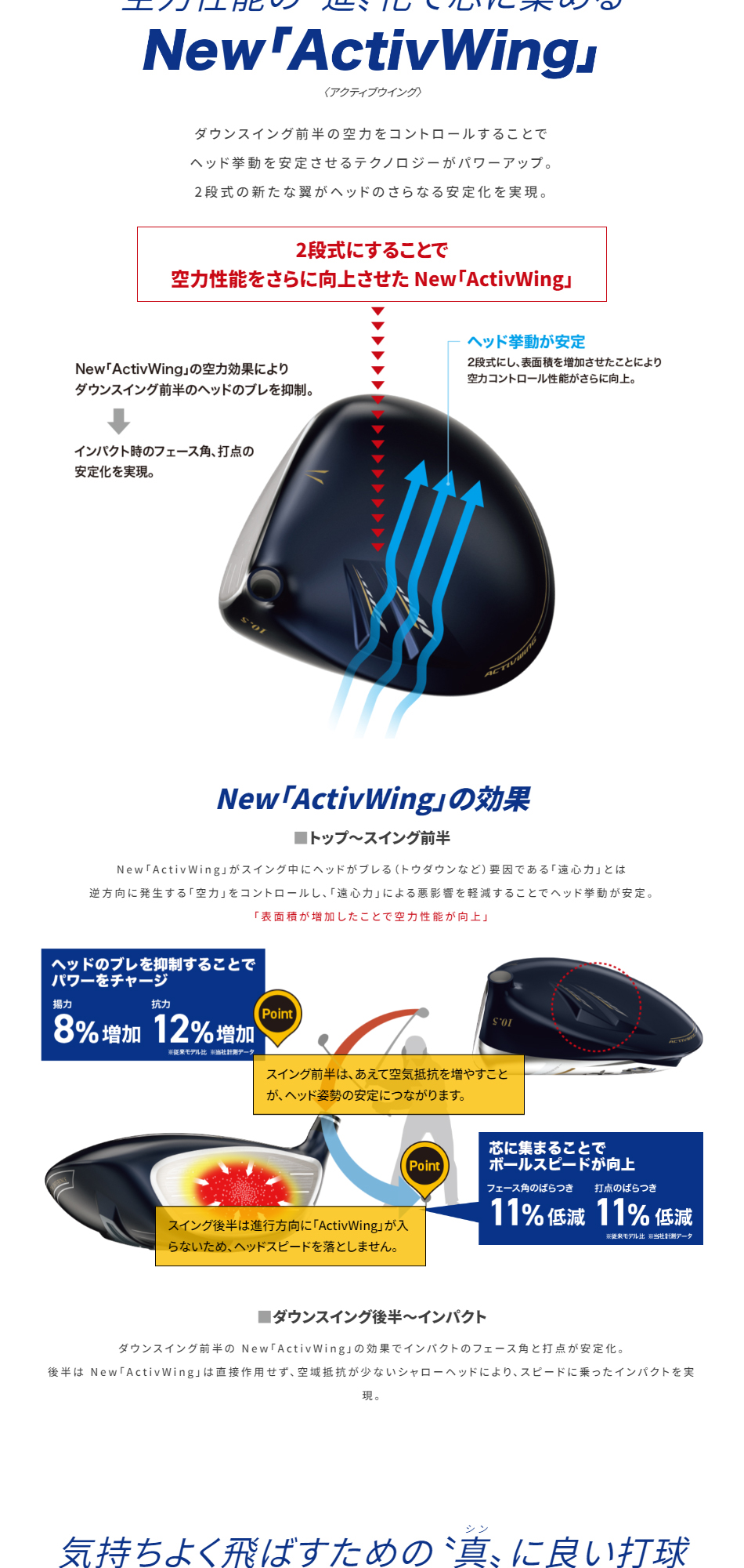 ダウンスイング前半の空力をコントロールすることでヘッド挙動を安定させるテクノロジーがパワーアップ。