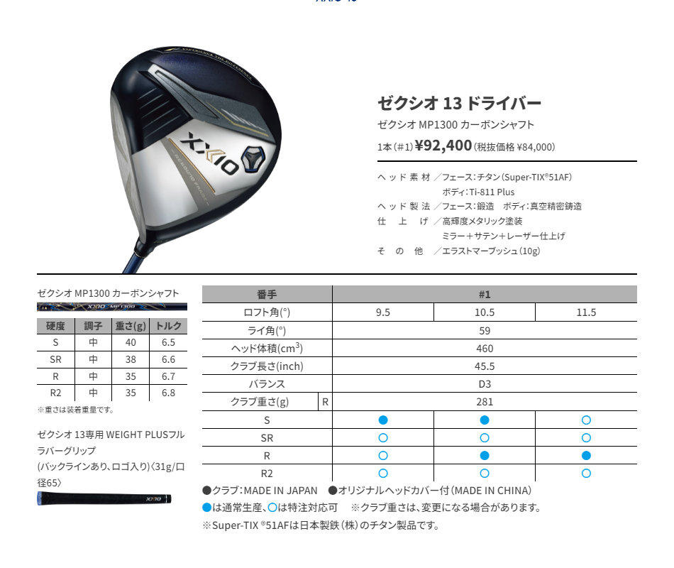 【日本正規品】 DUNLOP XXIO13 ネイビー ドライバー 2024年モデル レフティ ゼクシオ MP1300 カーボンシャフト 11.5 R