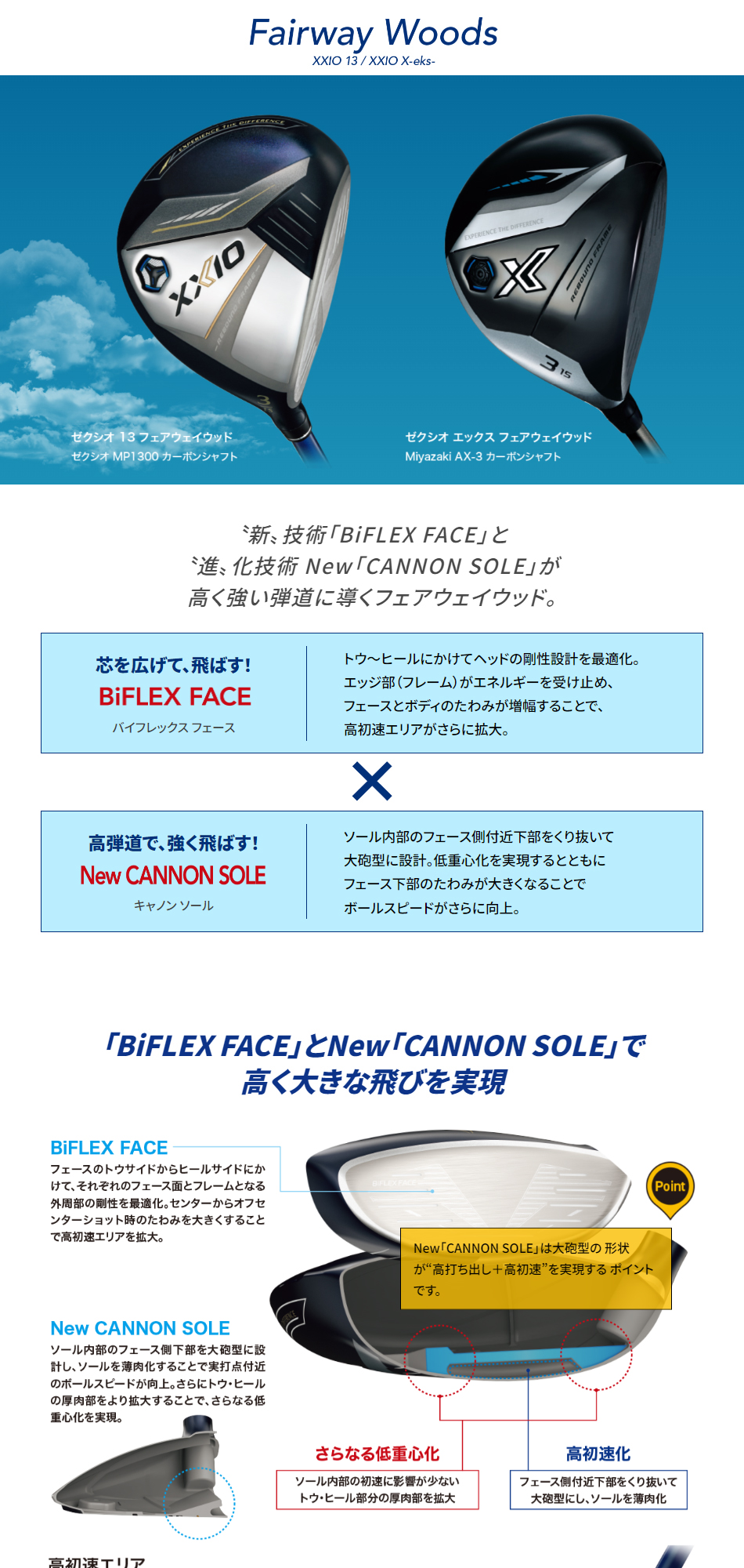 「新」技術「BiFLEX FACE」と「進」化技術 New「CANNON SOLE」が高く強い弾道に導くゼクシオ 13 フェアウェイウッド。