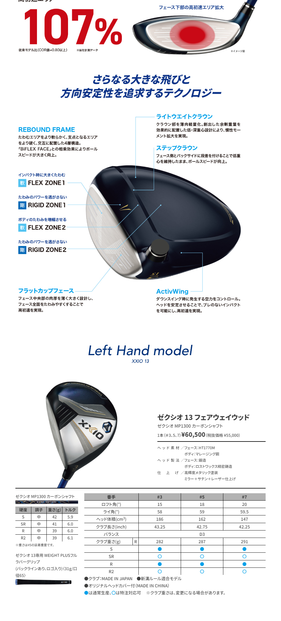 【日本正規品】 DUNLOP XXIO13 ネイビー フェアウェイウッド 2024年モデル レフティ ゼクシオ MP1300 カーボンシャフト #5 R