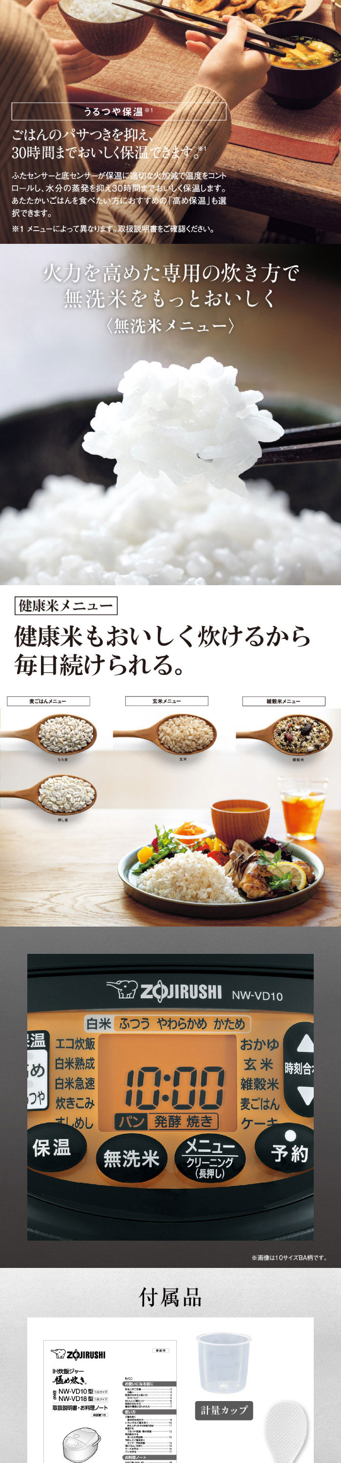 | 保温時間 | うるつや保温:30時間まで 高め保温:12時間まで |