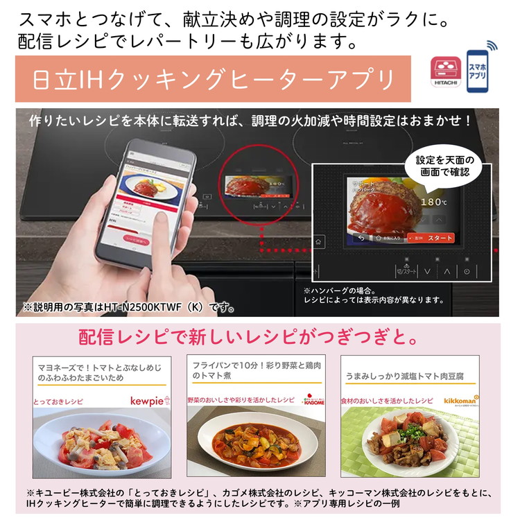 日立 HT-N2500KTWF K プレミアムブラック [ビルトインIHクッキングヒーター (IH3口・幅75cm・オールメタル対応・スマホアプリ対応)]