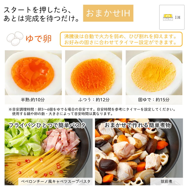 食材と分量に合った火力と時間でオート調理してくれるので、調理の手間が軽減できます。