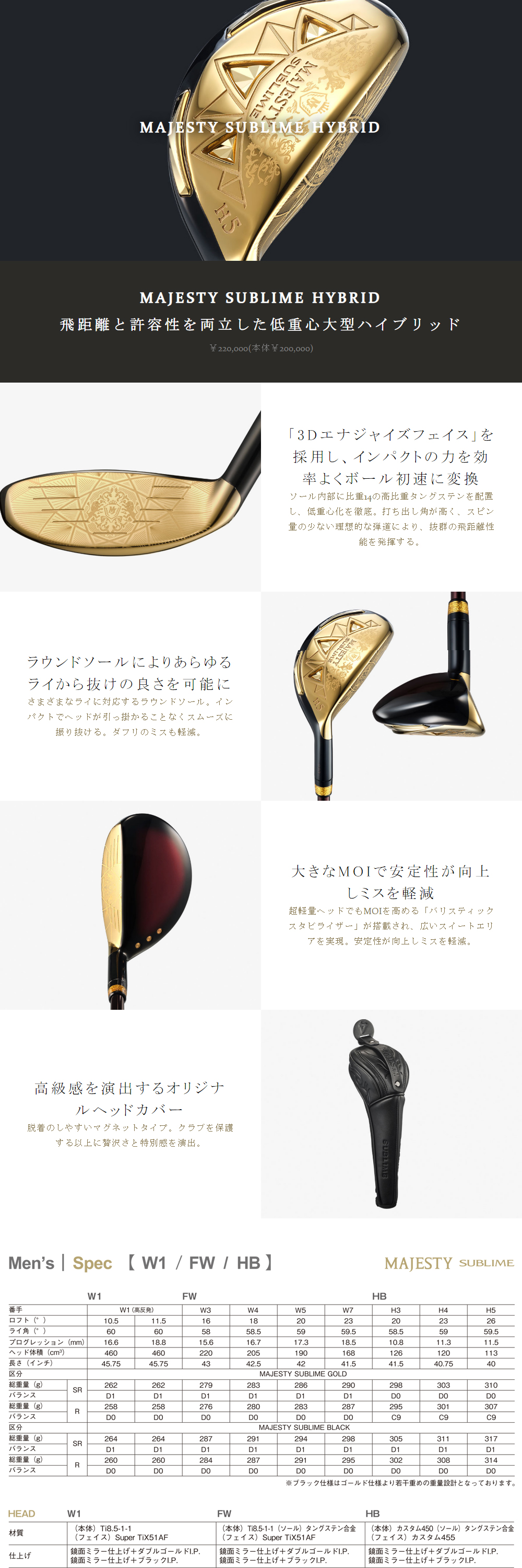 * 材質:(本体)カスタム450 / (ソール)タングステン合金 / (フェイス)カスタム455