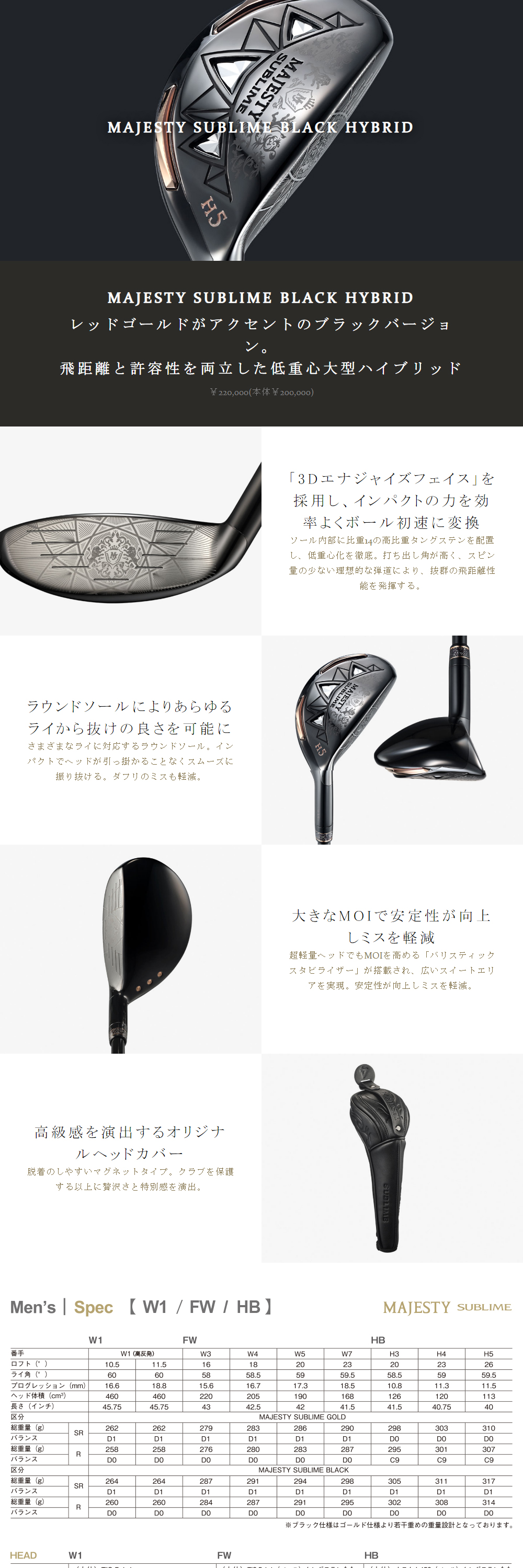【日本正規品】 マジェスティ ゴルフ MAJESTY SUBLIME BLACK(マジェスティサブライムブラック) ハイブリッド 2023年モデル MJ SUBLIME LV935ブラック カーボンシャフト SR H#4