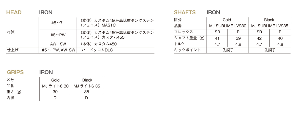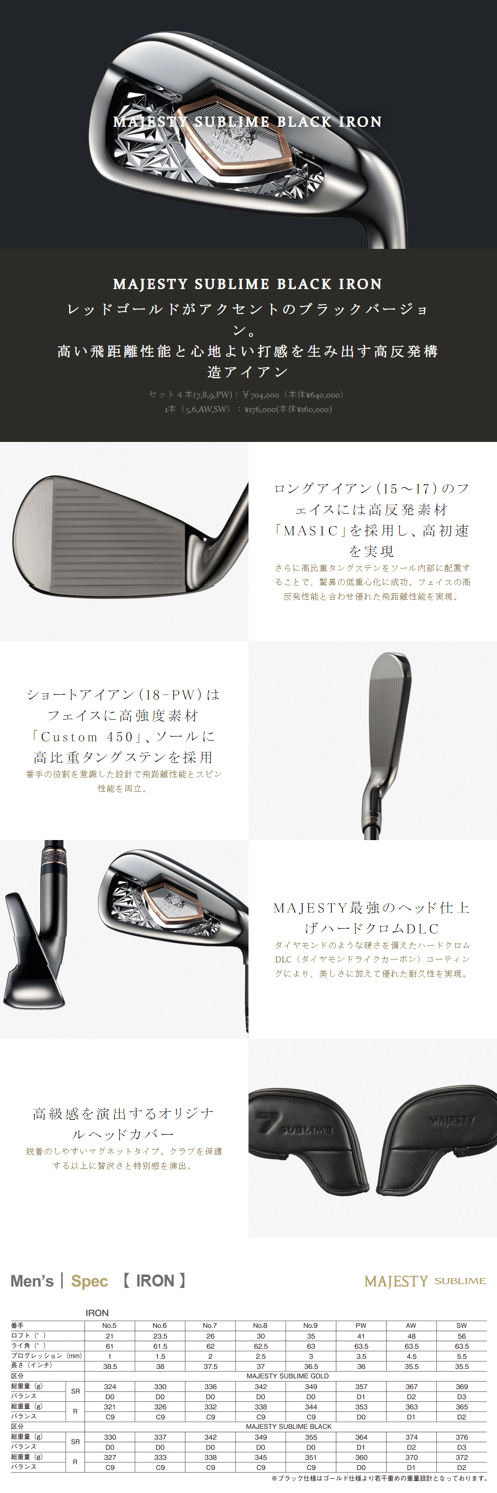 【日本正規品】 マジェスティ ゴルフ MAJESTY SUBLIME BLACK(マジェスティサブライムブラック) アイアンセット4本組(#7-9、PW) 2023年モデル MJ SUBLIME LV935ブラック カーボンシャフト R