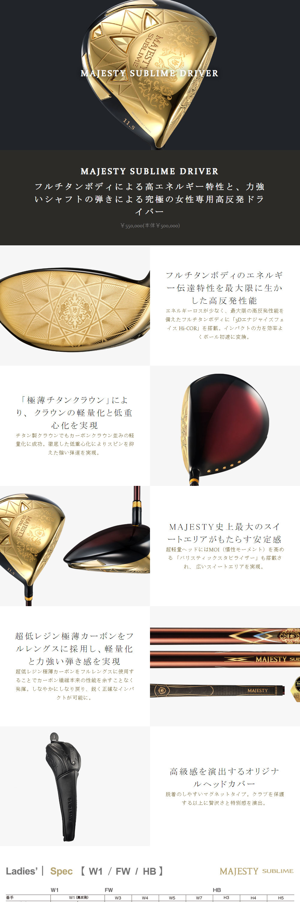 フルチタンボディによる高エネルギー特性と、力強いシャフトの弾きによる究極の女性専用高反発ドライバー
