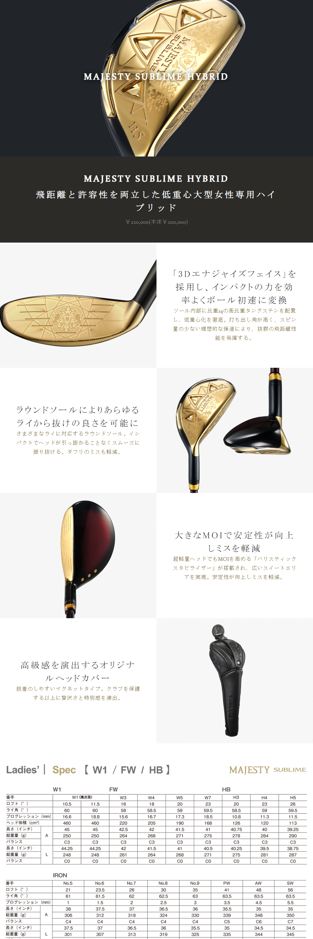 【日本正規品】 マジェスティ ゴルフ MAJESTY SUBLIME (マジェスティサブライム) レディース ハイブリッド 2023年モデル MJ SUBLIME TL930 カーボンシャフト A H#5