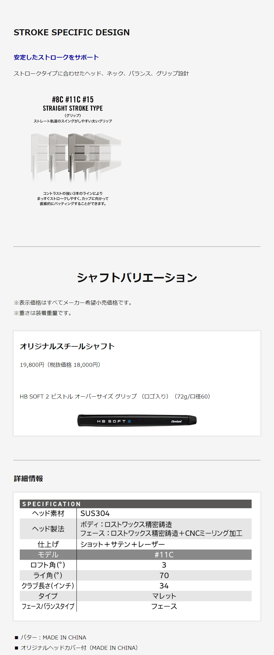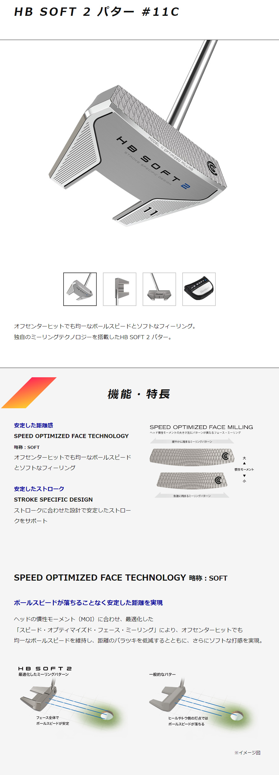 【日本正規品】 クリーブランド HB SOFT2 パター 2024年モデル HB SOFT2 ピストルオーバーサイズグリップ #11C 34