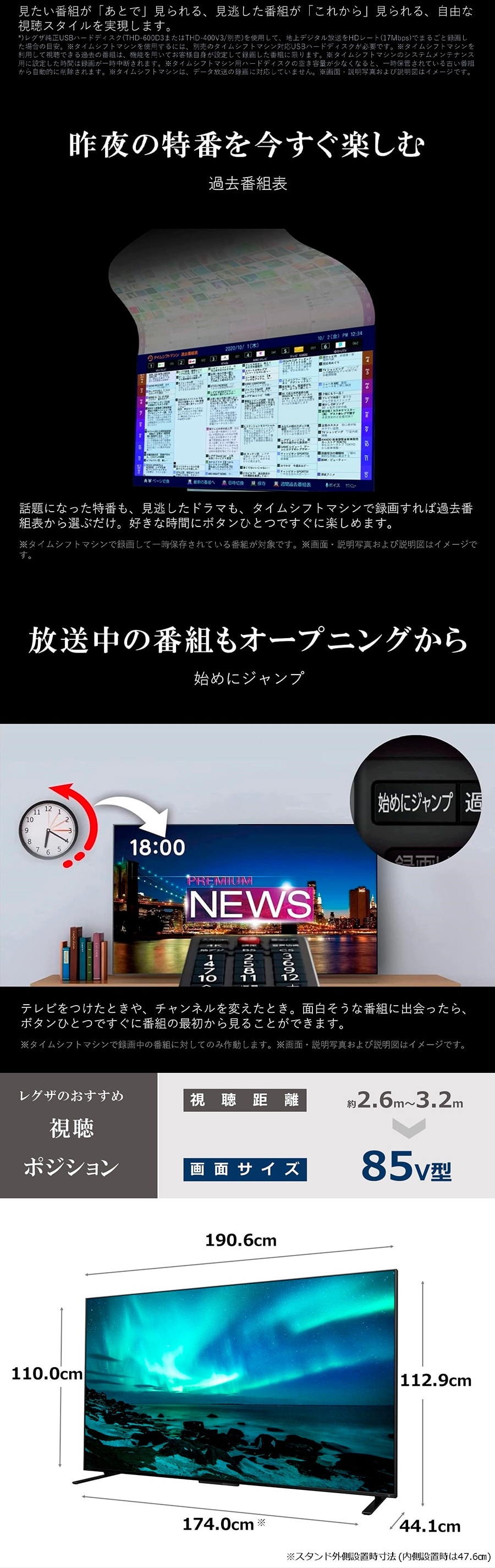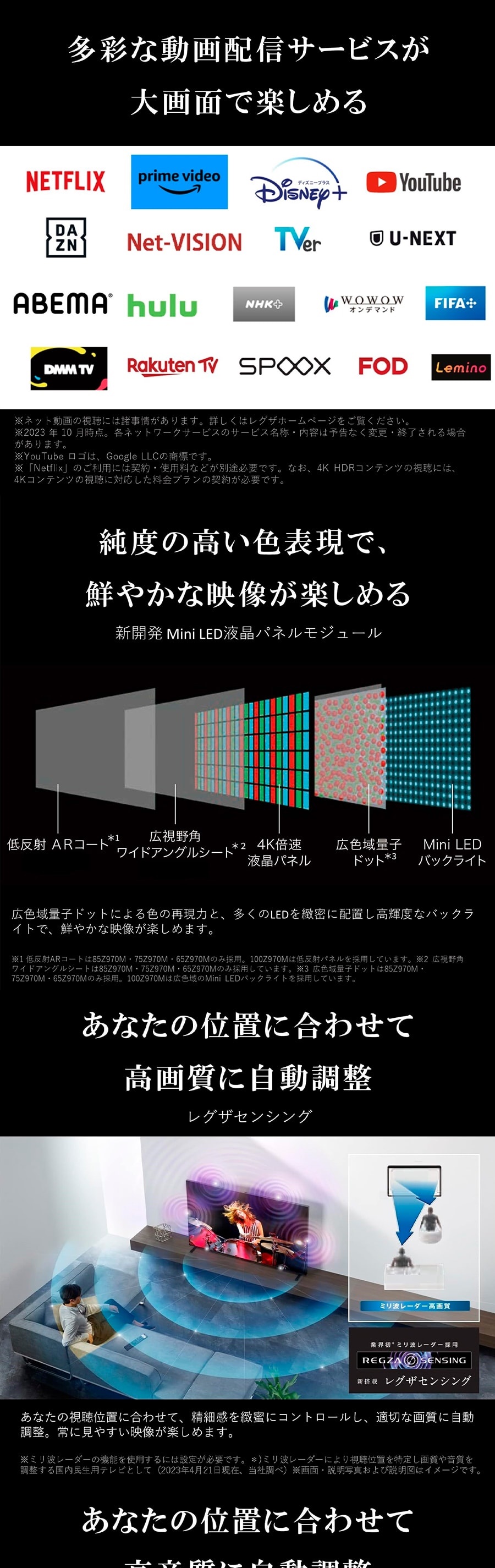 東芝 85Z970M REGZA [85V型 地上・BS・110度CSデジタル 4K内蔵 液晶テレビ]
