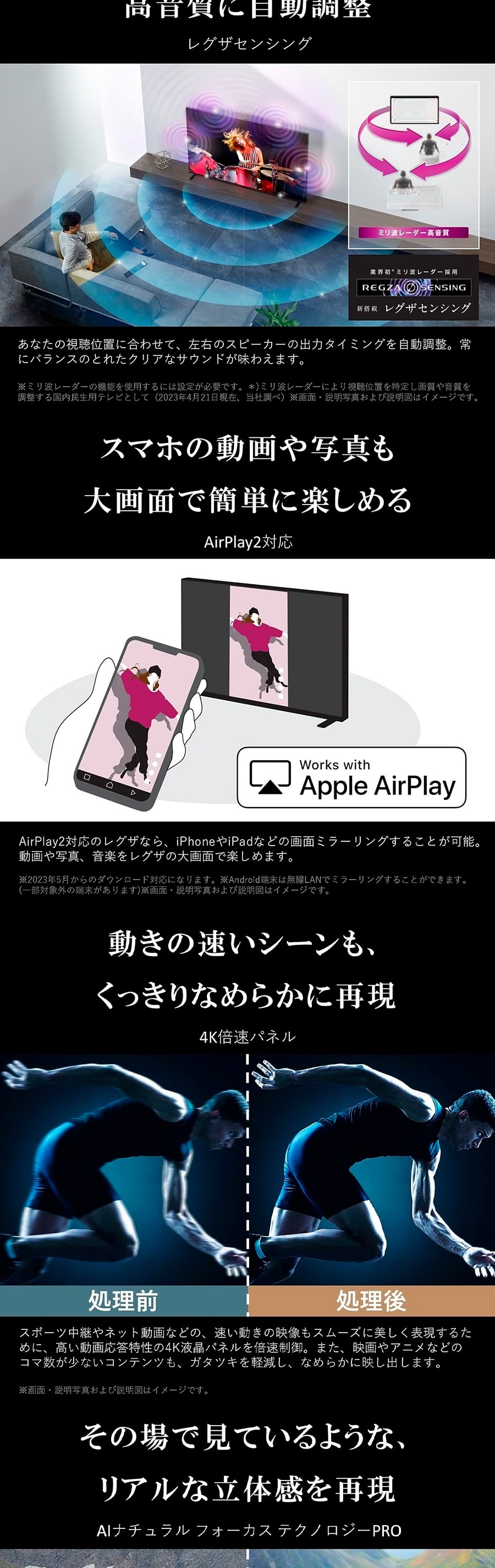さらに、エリアコントロールの分割数を従来比約10倍※に増やし、レグザエンジンZRαが高精度にコントロールすることで、明部暗部の境もよりはっきりと表現した、高コントラストでリアルな映像を再現しました。