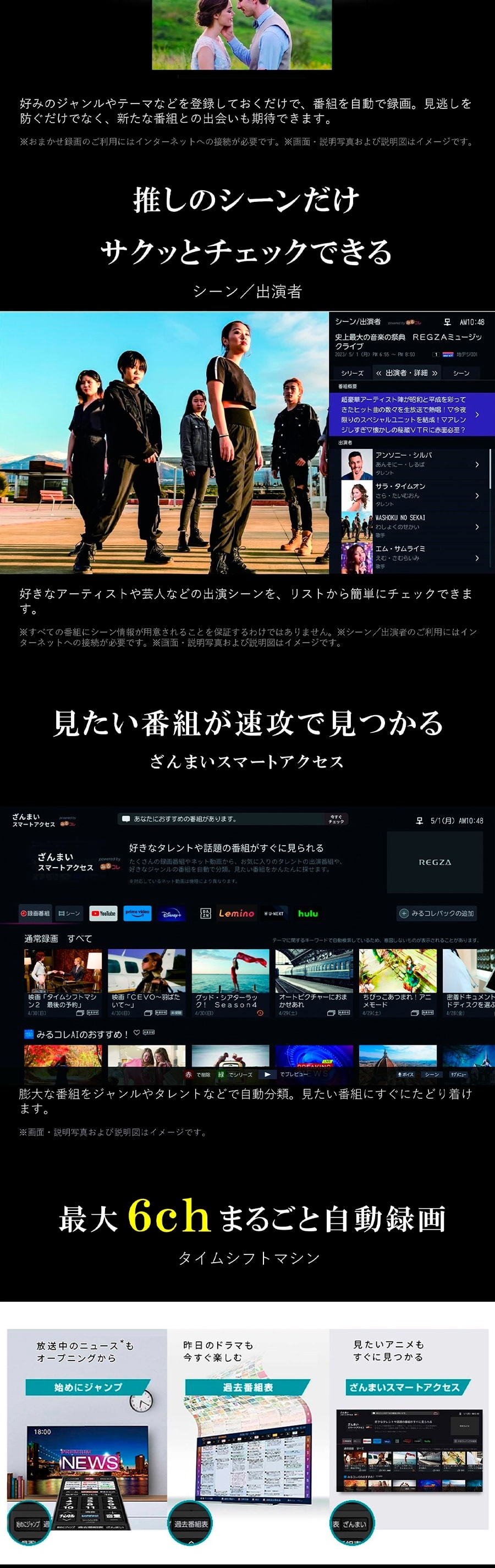 ネット動画特有のノイズを抑制して、テレビならではの大画面で様々なコンテンツを高画質で快適に楽しむことができます。