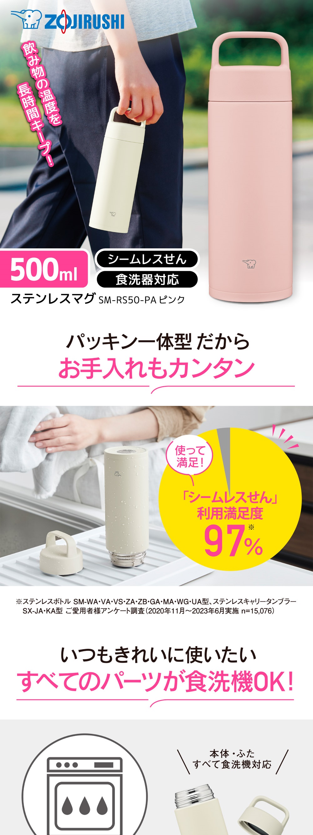 象印 SM-RS50-PA ピンク [ステンレスマグ (0.50L)]