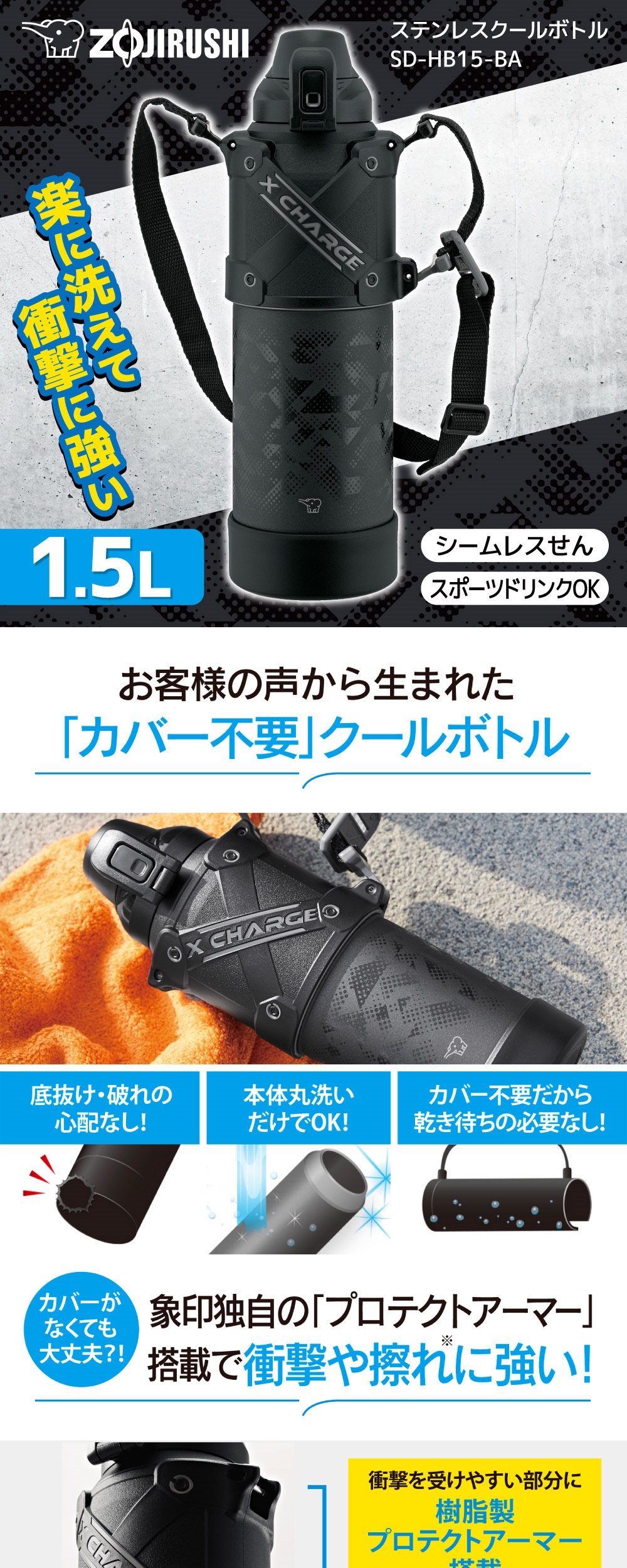 象印 SD-HB15-BA ブラック [ステンレスクールボトル (1.5L)]