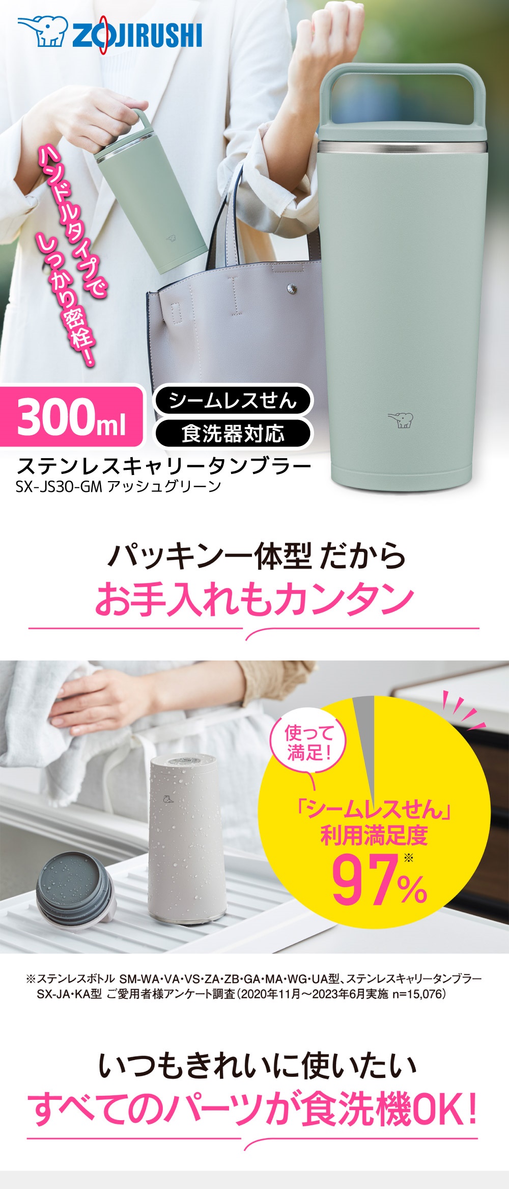 象印 SX-JS30-GM アッシュグリーン [ステンレスキャリータンブラー (0.3L)]