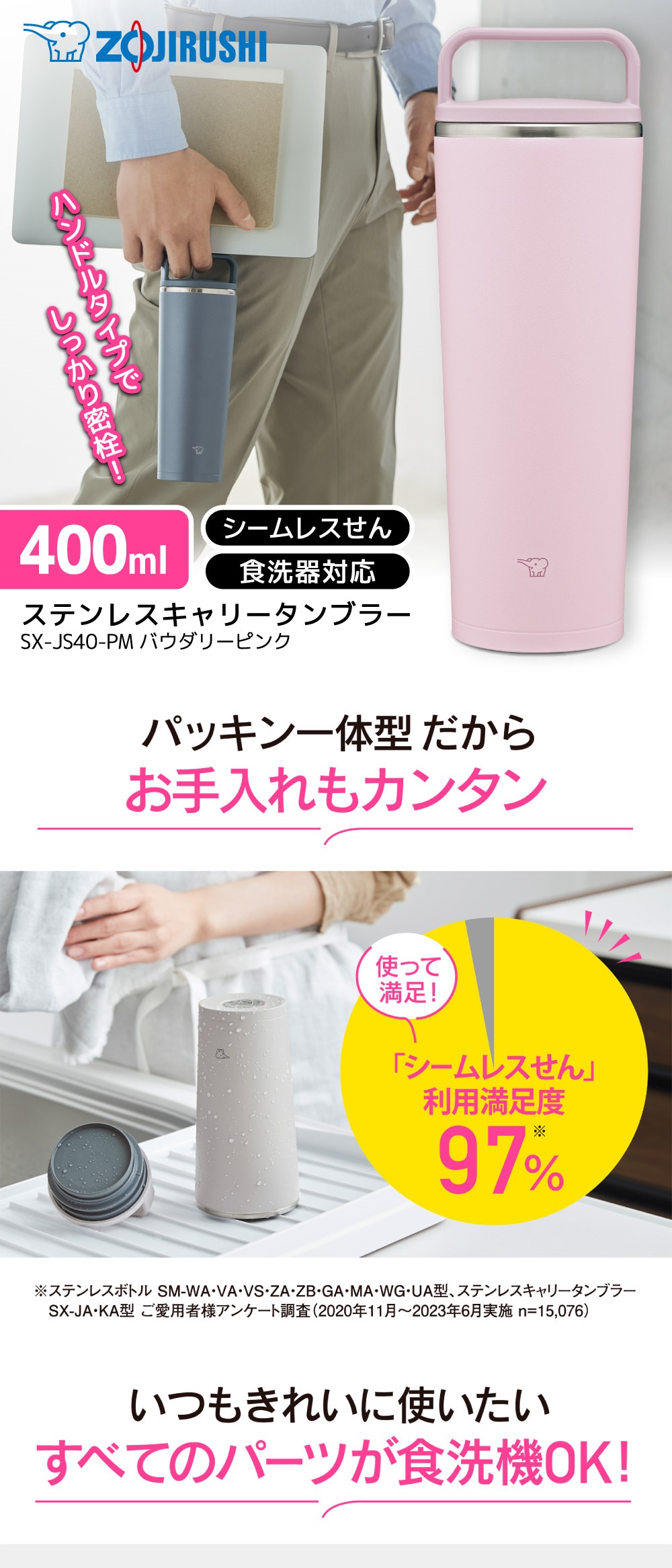 象印 SX-JS40-PM パウダリーピンク [ステンレスキャリータンブラー (0.4L)]