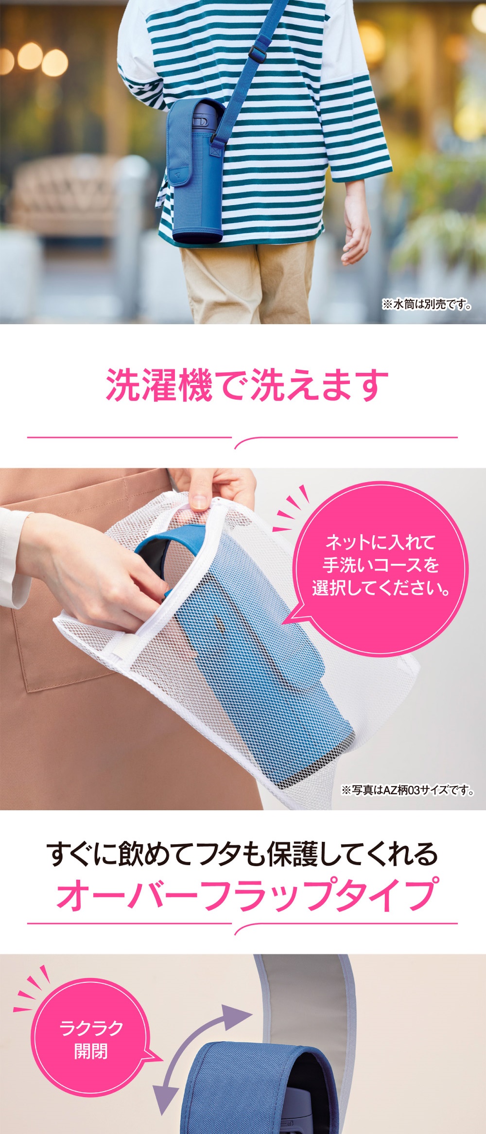 ★ すぐ飲めてふたを保護する「オーバーフラップタイプ」
