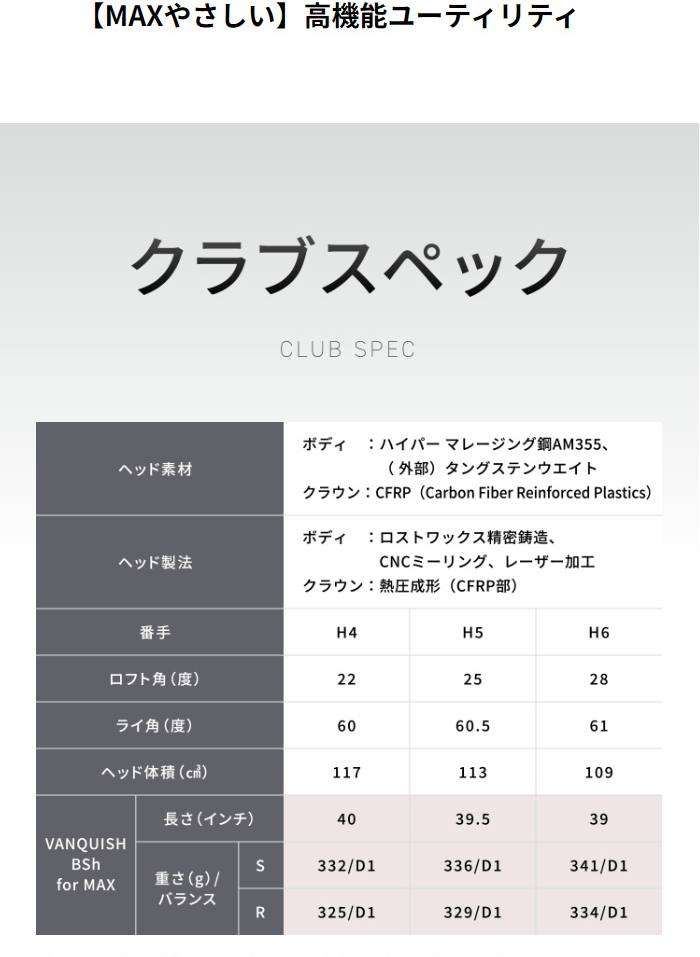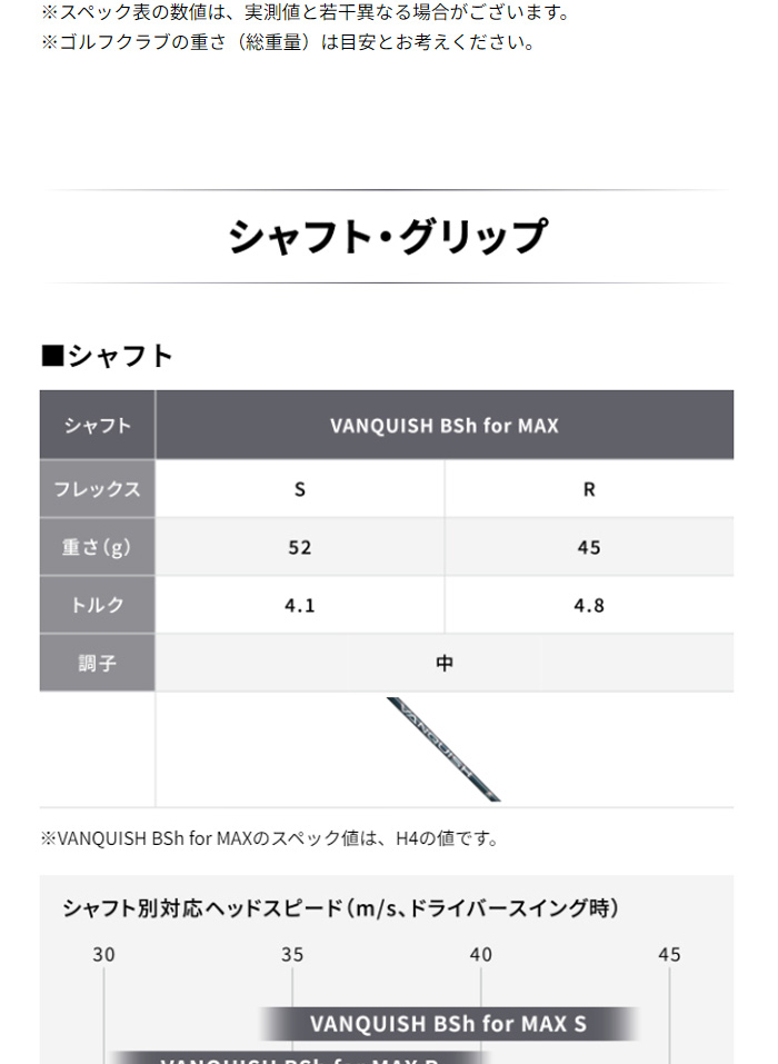 | シャフト名 | VANQUISH BSh for MAX |