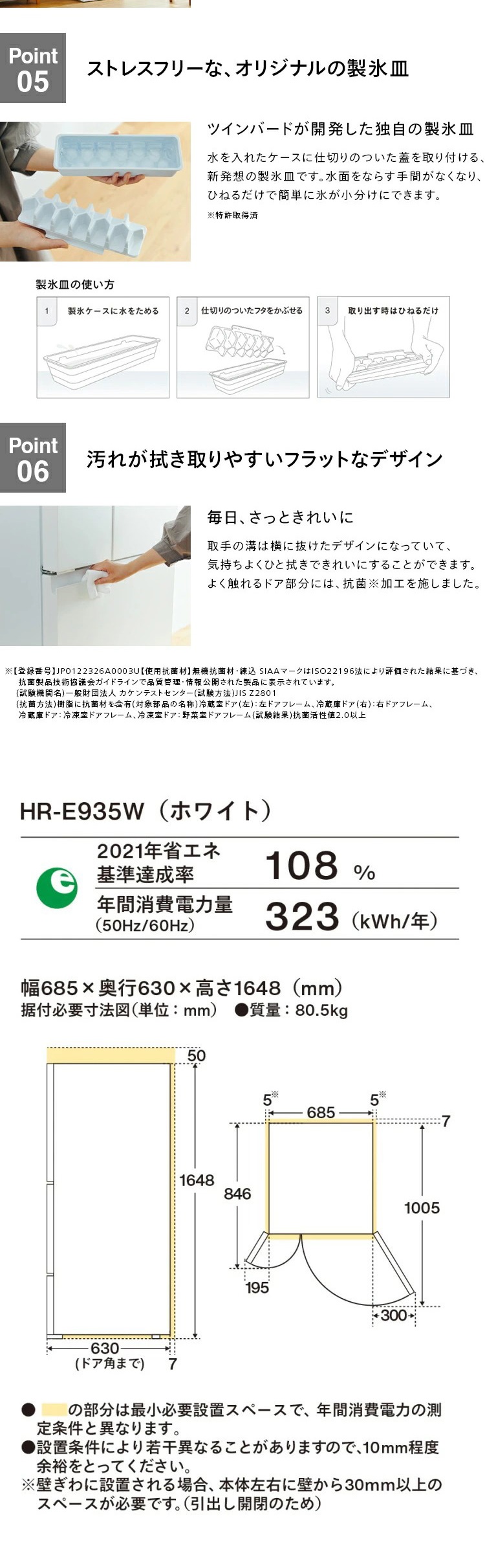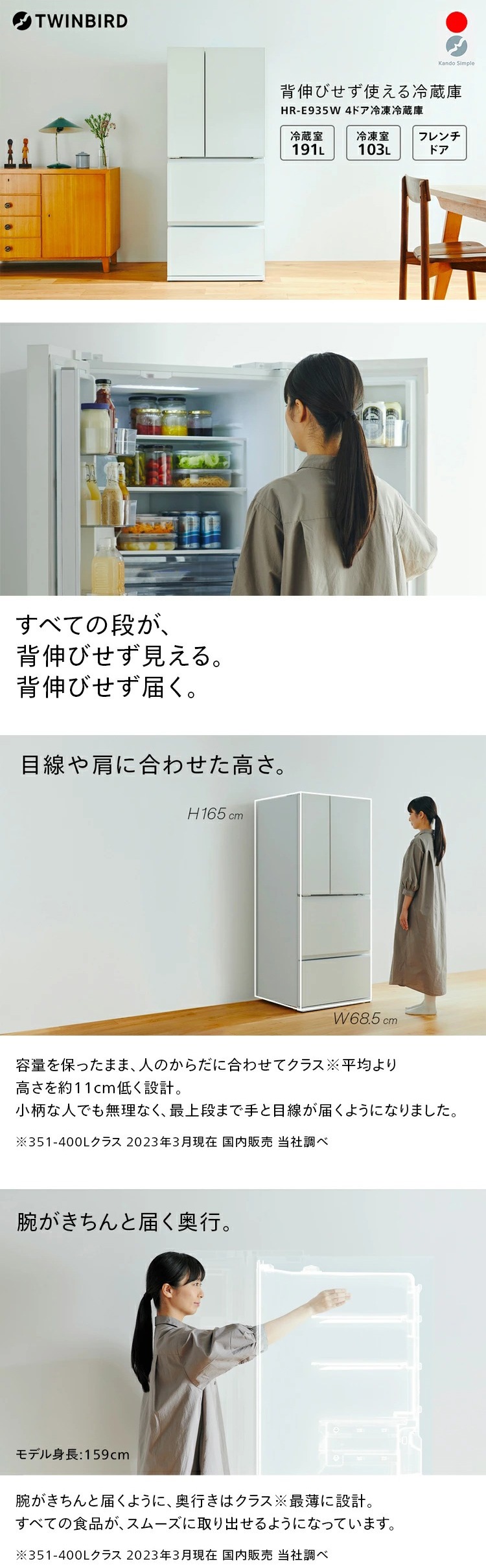 TWINBIRD HR-E935W ホワイト [冷蔵庫 (354L・フレンチドア/観音開き)]